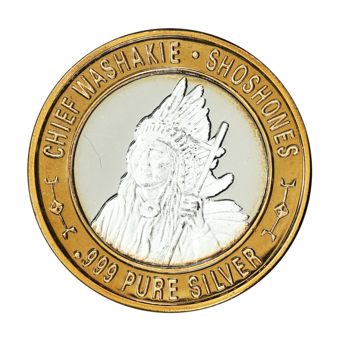 One .999 Silver Chief Washakie $10 Casino Limited Native American Series Gaming Token.