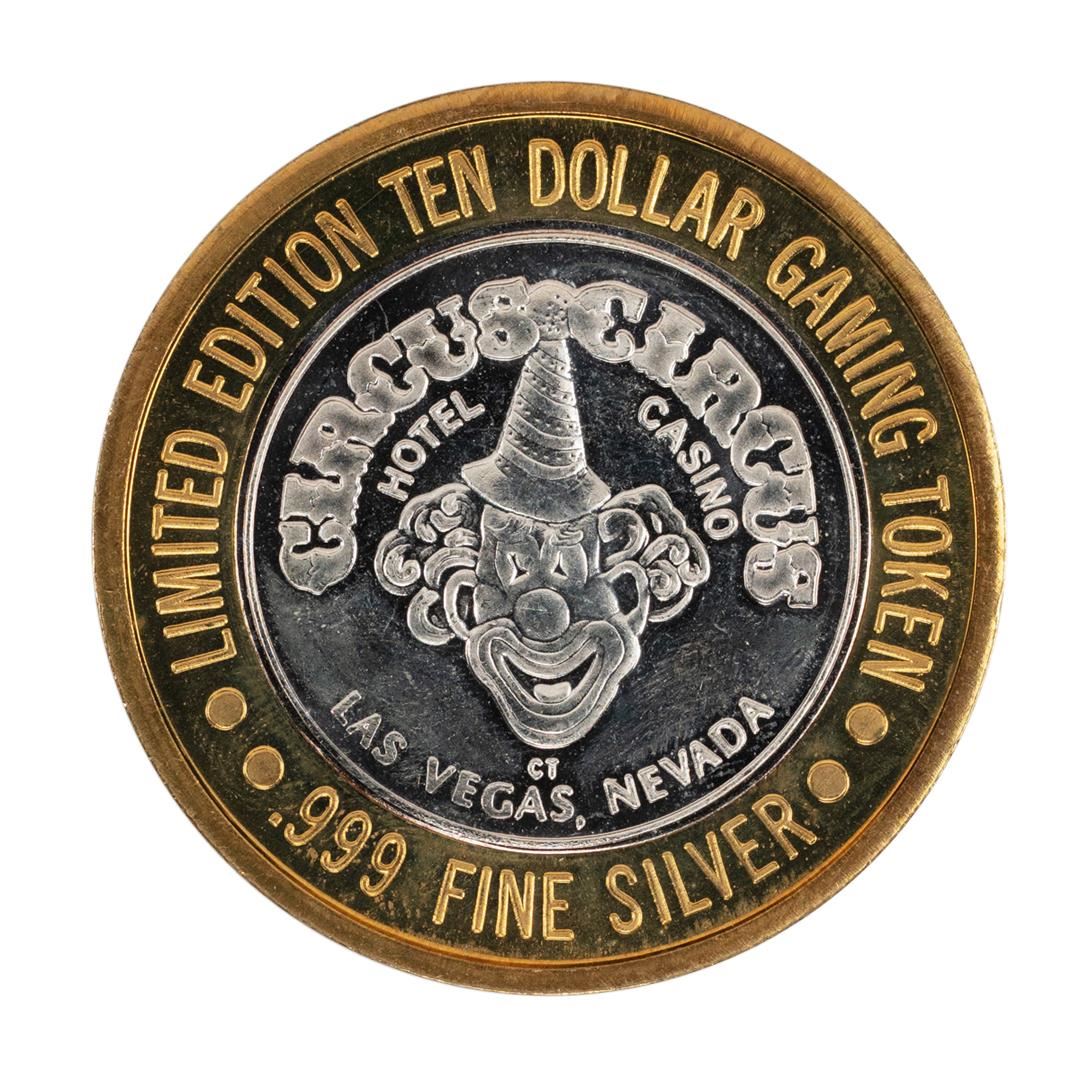 One .999 Silver Circus Circus $10 Casino Limited Edition Gaming Token.