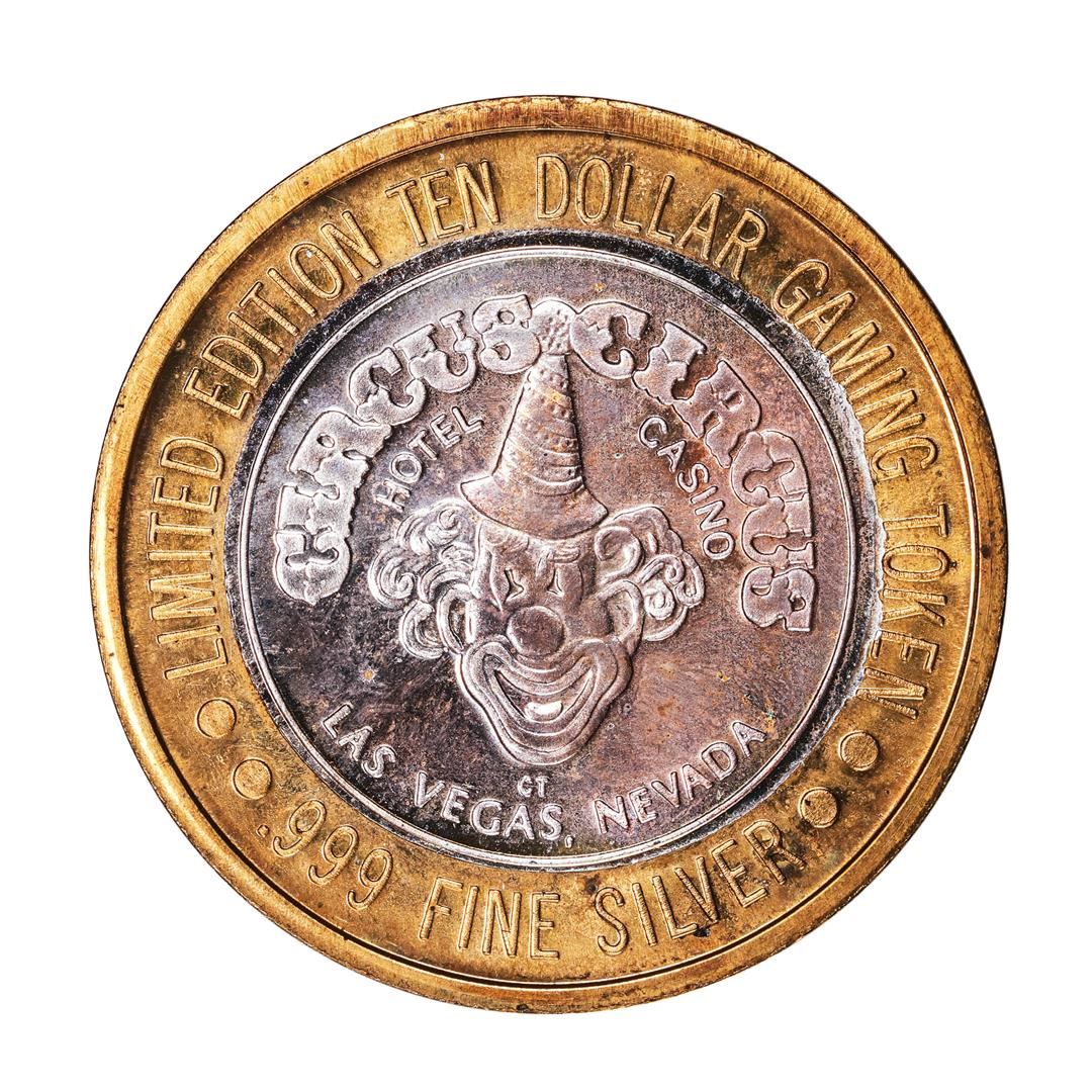 One .999 Silver Circus Circus Hotel & Casino Reno, NV $10 Limited Edition Gaming Token.