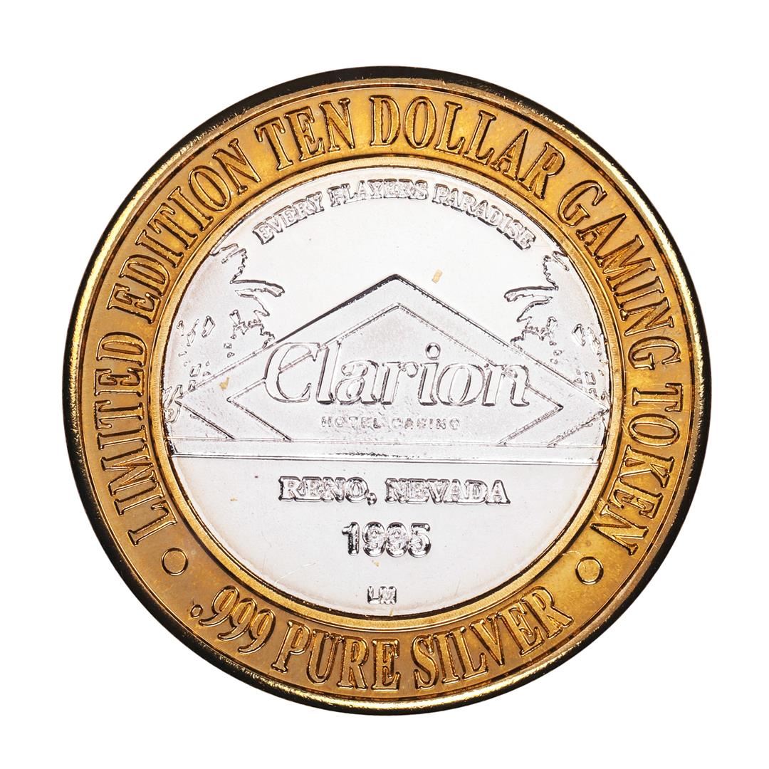 One .999 Silver Clarion Hotel & Casino Reno, Nevada $10 Limited Edition Gaming Token.
