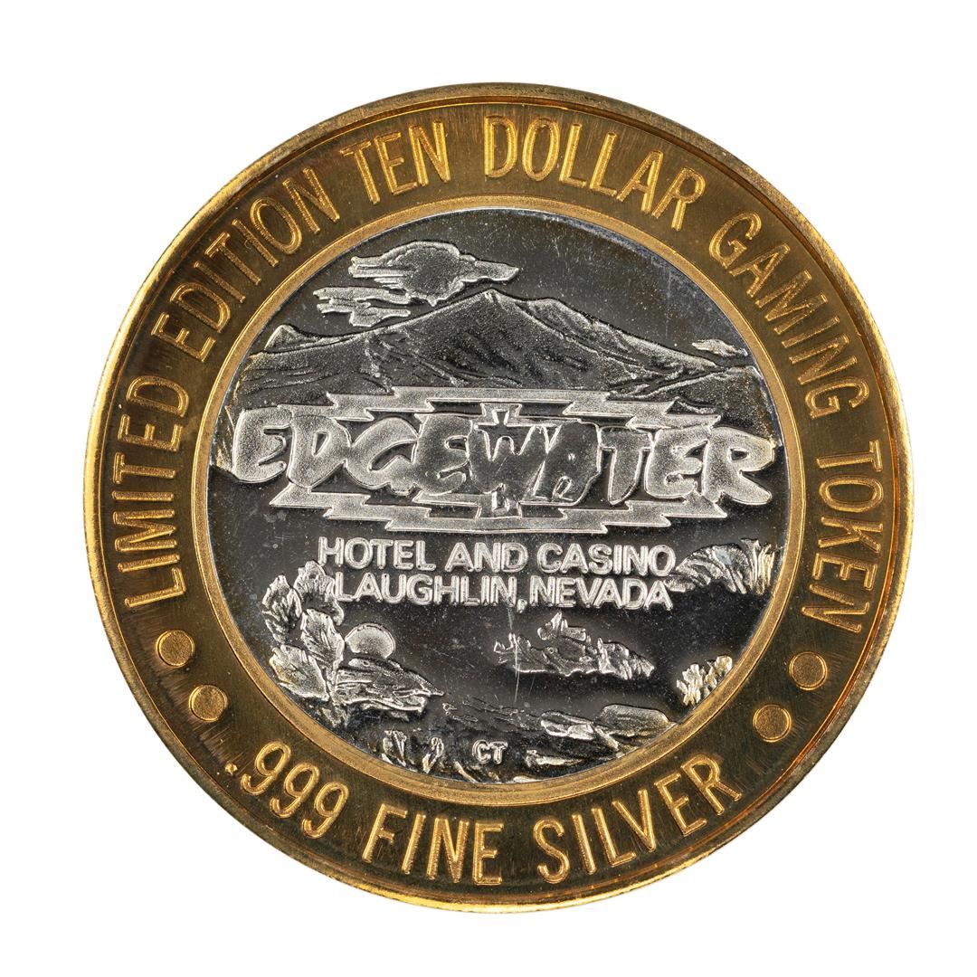 One .999 Silver Edgewater Hotel & Casino Laughlin, NV $10 Limited Edition Gaming Token.
