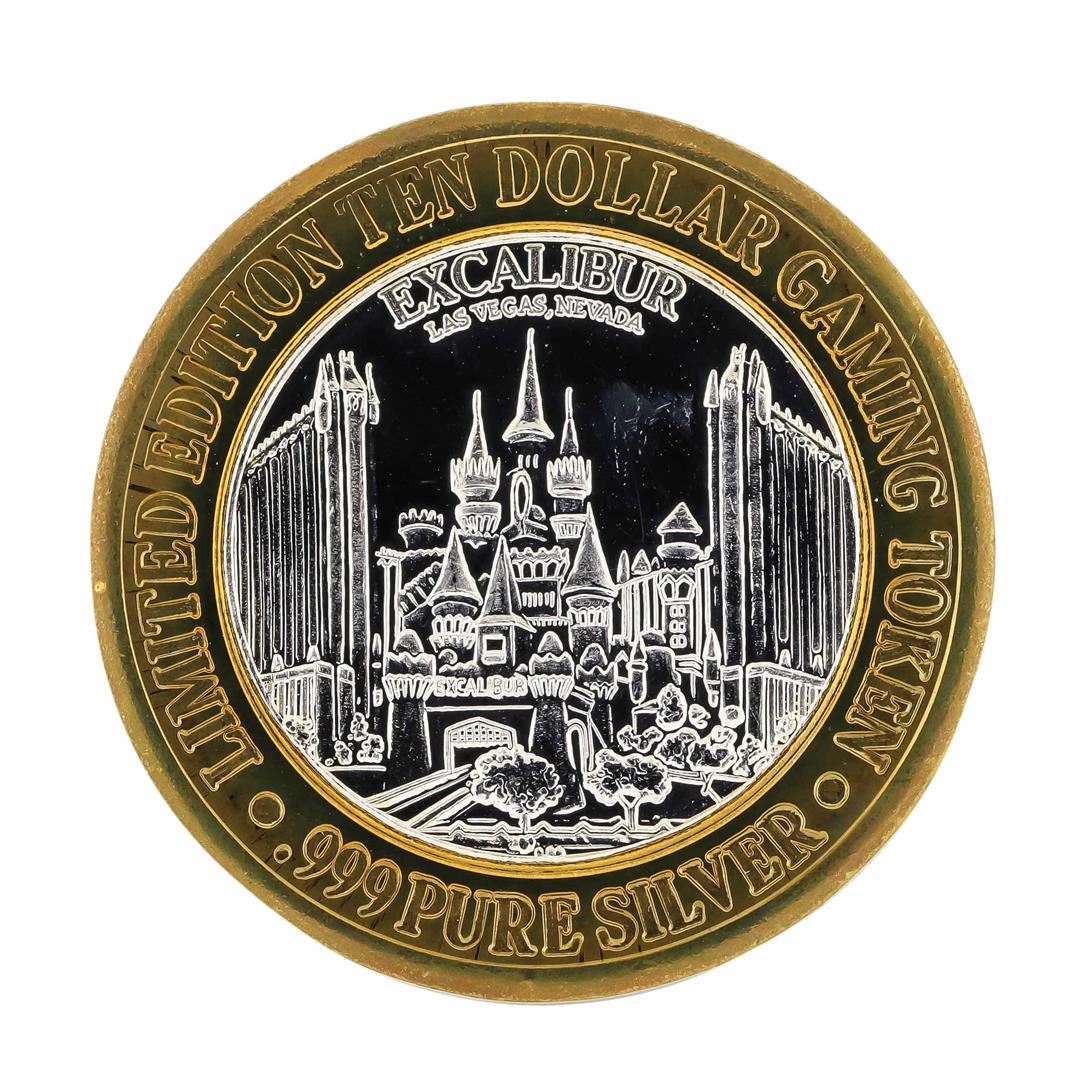 One .999 Silver Excalibur Las Vegas Nevada $10 Casino Limited Edition Gaming Token.