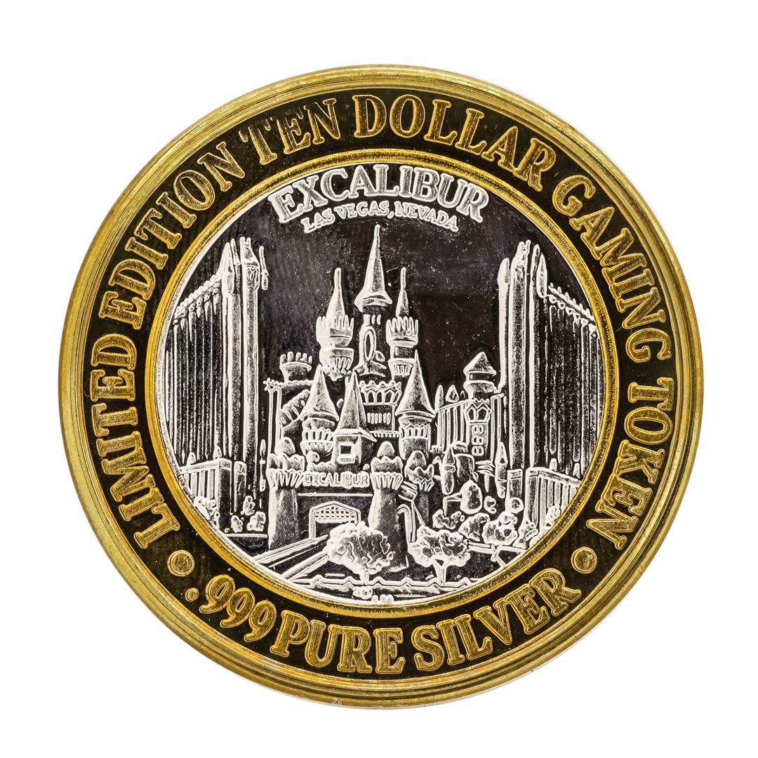 One .999 Silver Excalibur Las Vegas Nevada $10 Casino Limited Edition Gaming Token.