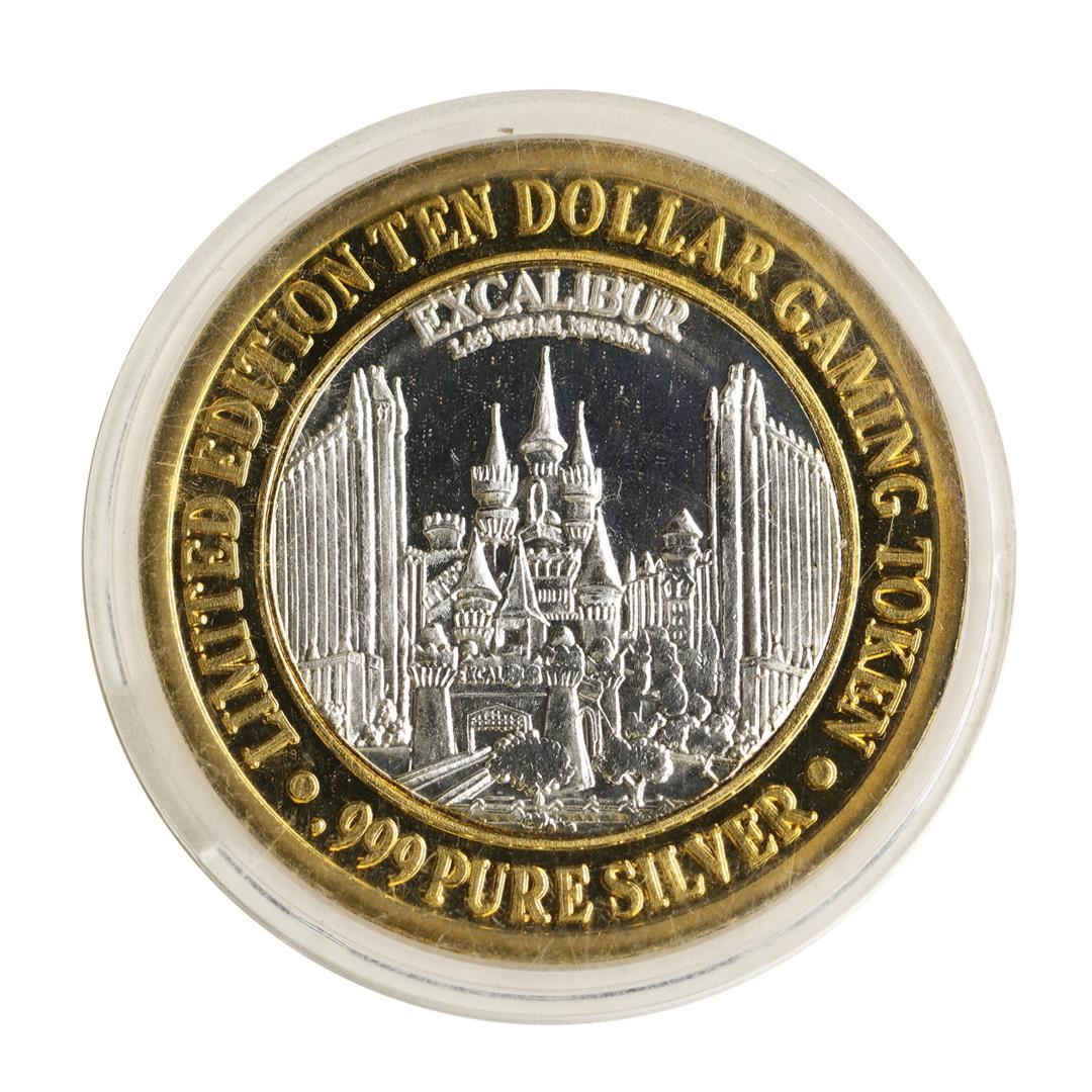 One .999 Silver Excalibur Las Vegas Nevada $10 Casino Limited Edition Gaming Token.