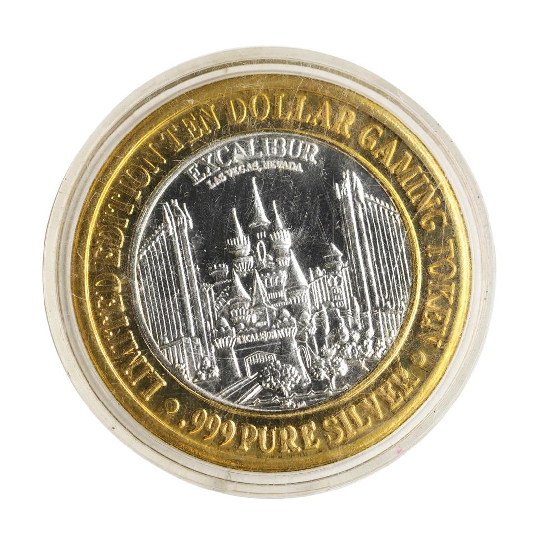 One .999 Silver Excalibur Las Vegas Nevada $10 Casino Limited Edition Gaming Token.