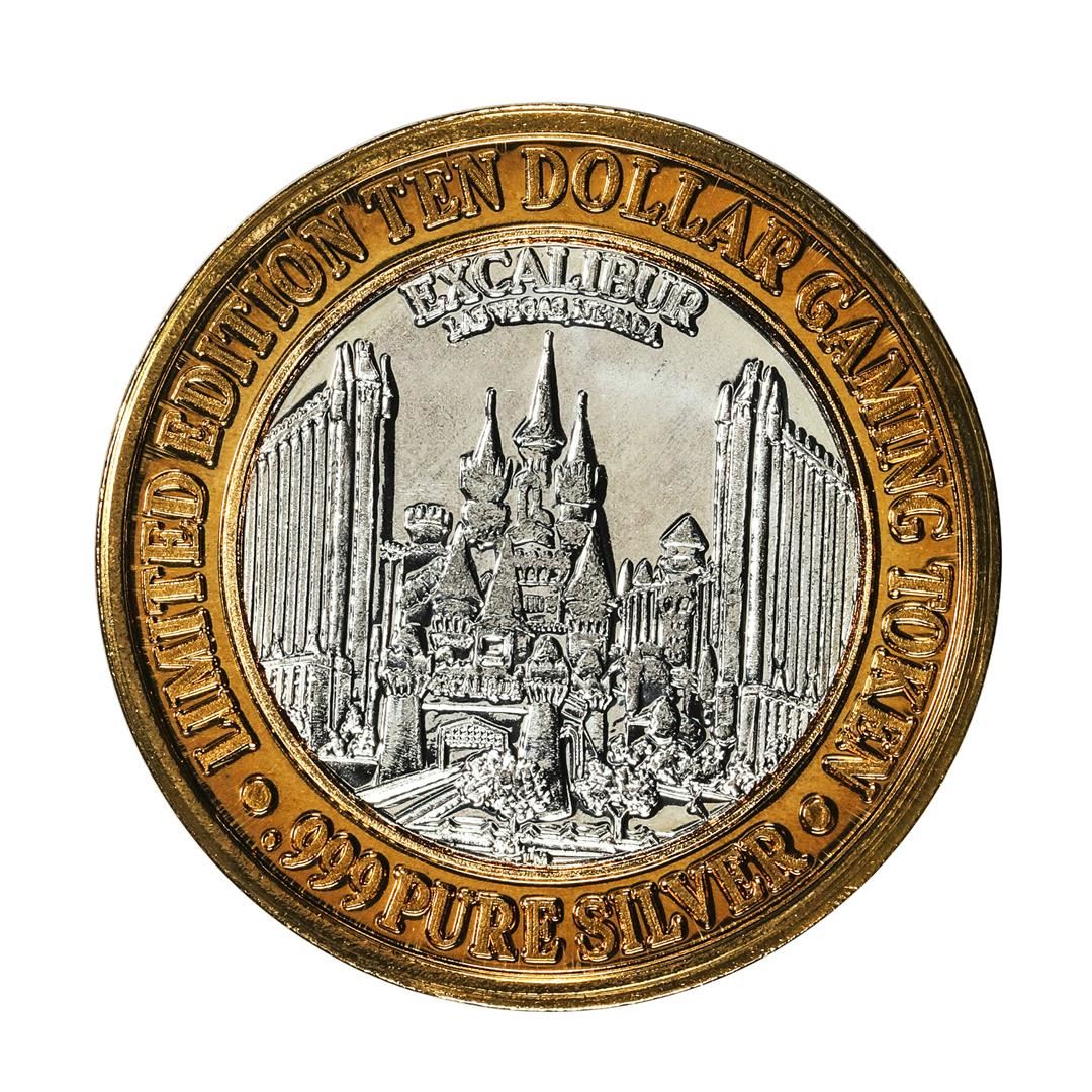 One .999 Silver Excalibur Las Vegas Nevada $10 Casino Limited Edition Gaming Token.