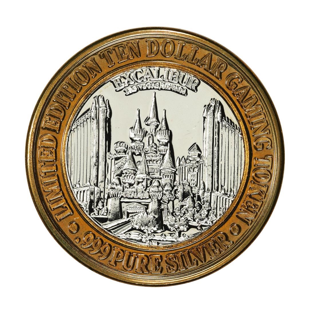 One .999 Silver Excalibur Las Vegas Nevada $10 Casino Limited Edition Gaming Token.