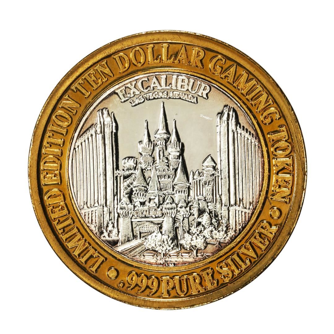 One .999 Silver Excalibur Las Vegas Nevada $10 Casino Limited Edition Gaming Token.