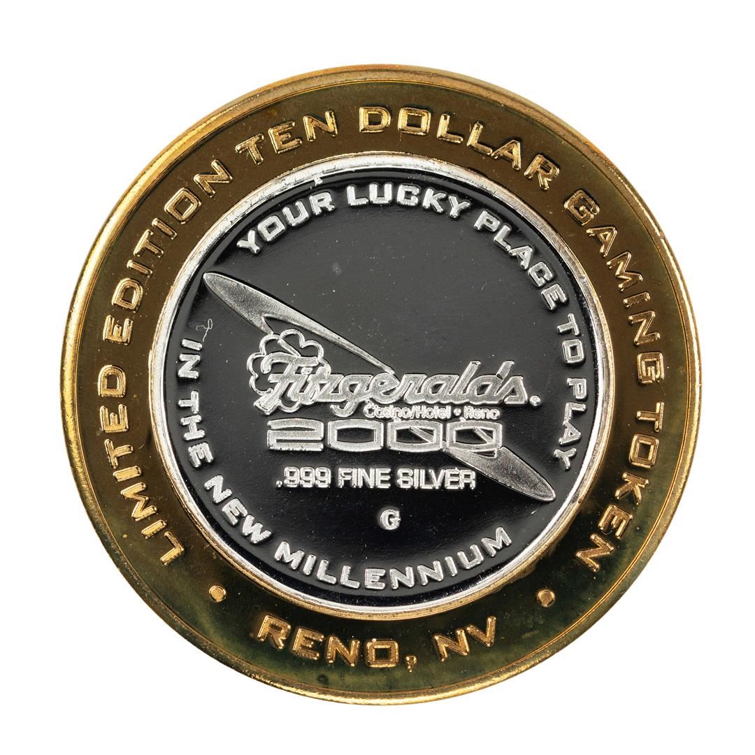 One .999 Silver Fitzgeralds Casino & Hotel Reno, Nevada $10 Limited Edition Gaming Token.