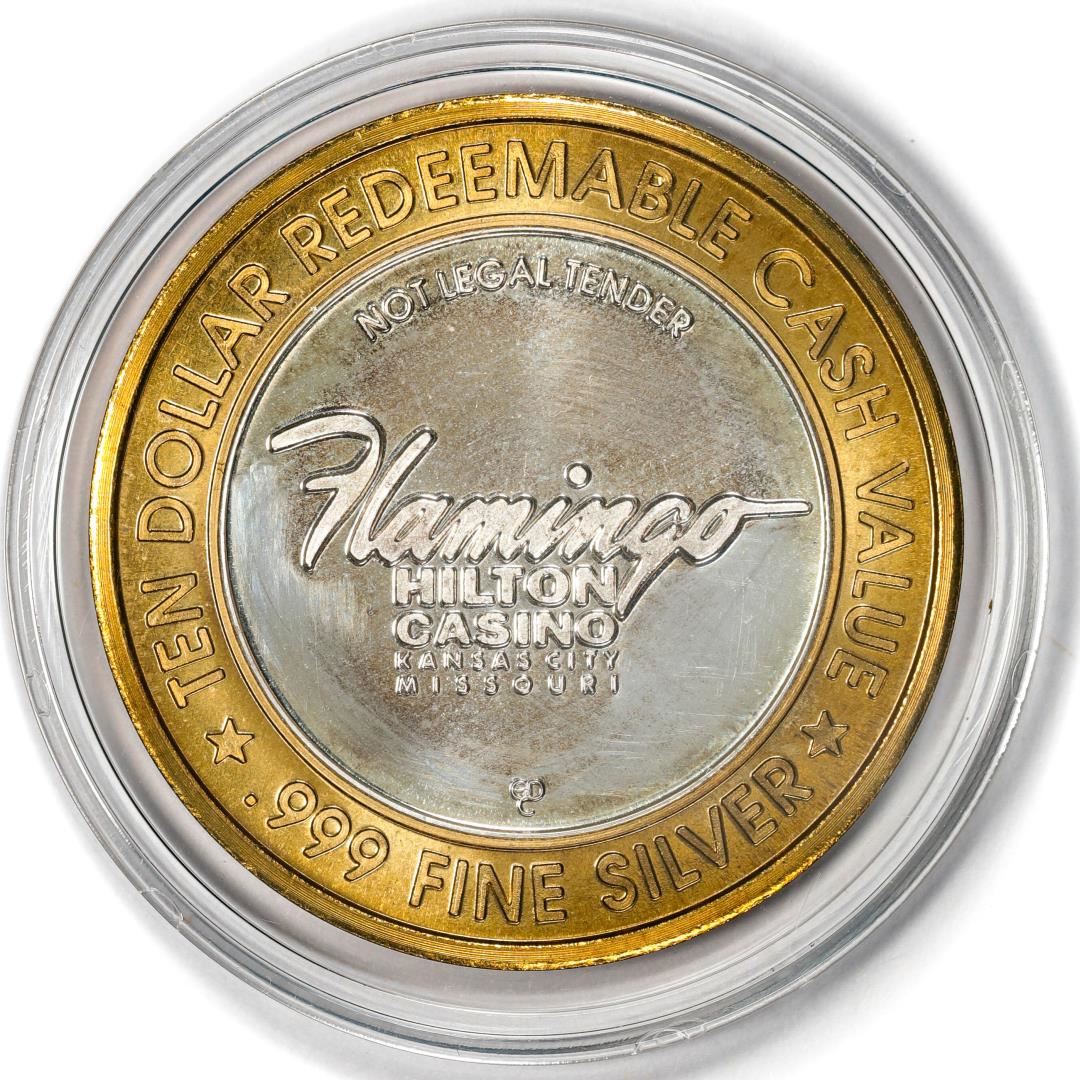 One .999 Silver Flamingo Hilton Kansas City, MO $10 Casino Limited Edition Gaming Token.