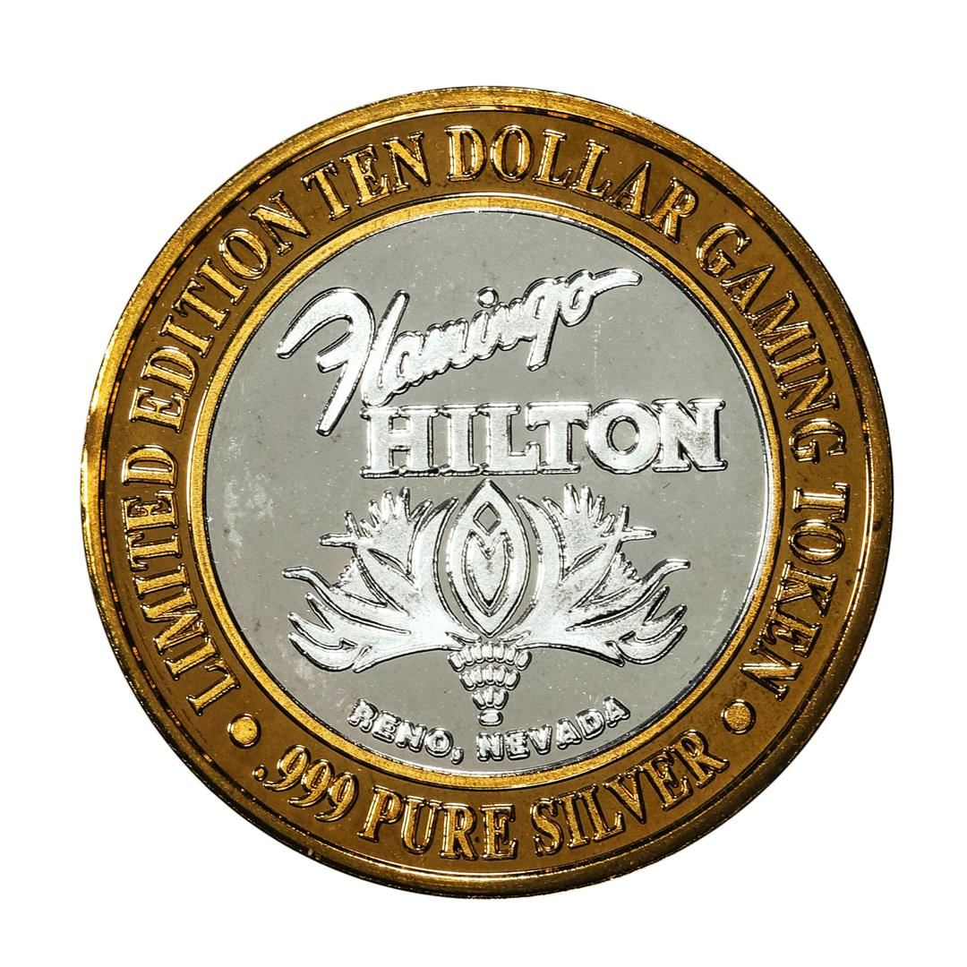 One .999 Silver Flamingo Hilton Reno, Nevada $10 Casino Limited Edition Gaming Token.