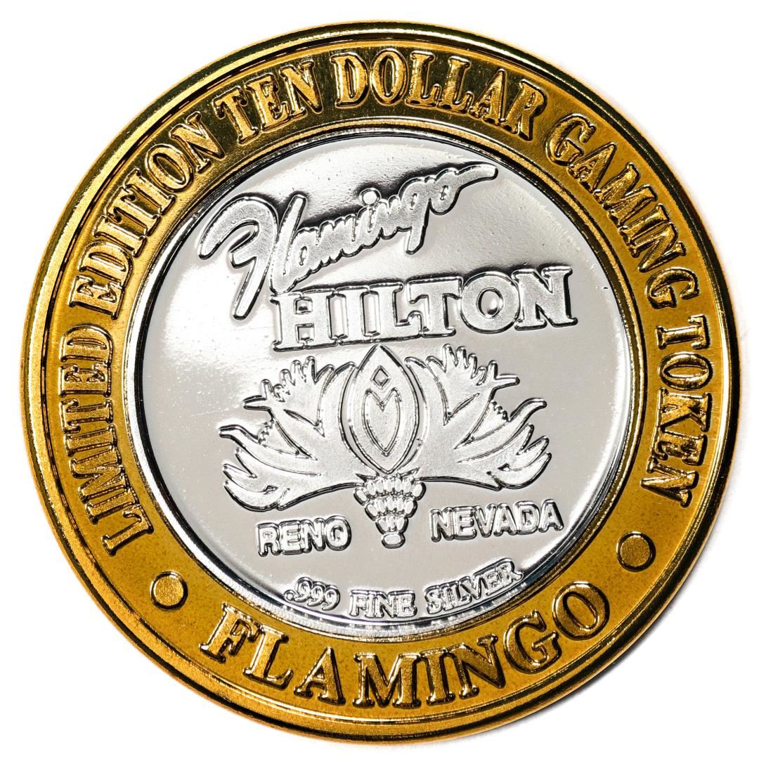 One .999 Silver Flamingo Hilton Reno, Nevada $10 Casino Limited Edition Gaming Token.
