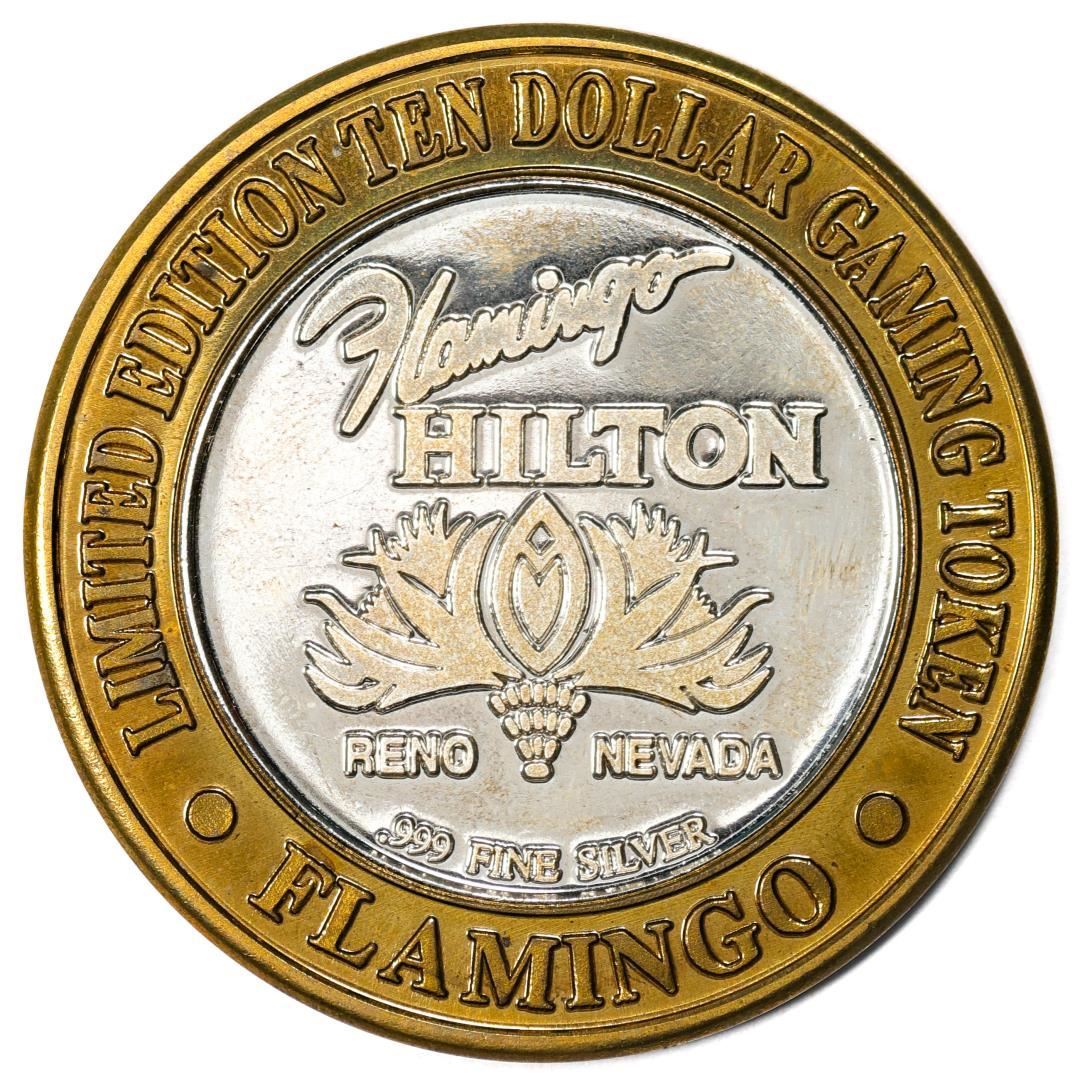 One .999 Silver Flamingo Hilton Reno, Nevada $10 Casino Limited Edition Gaming Token.