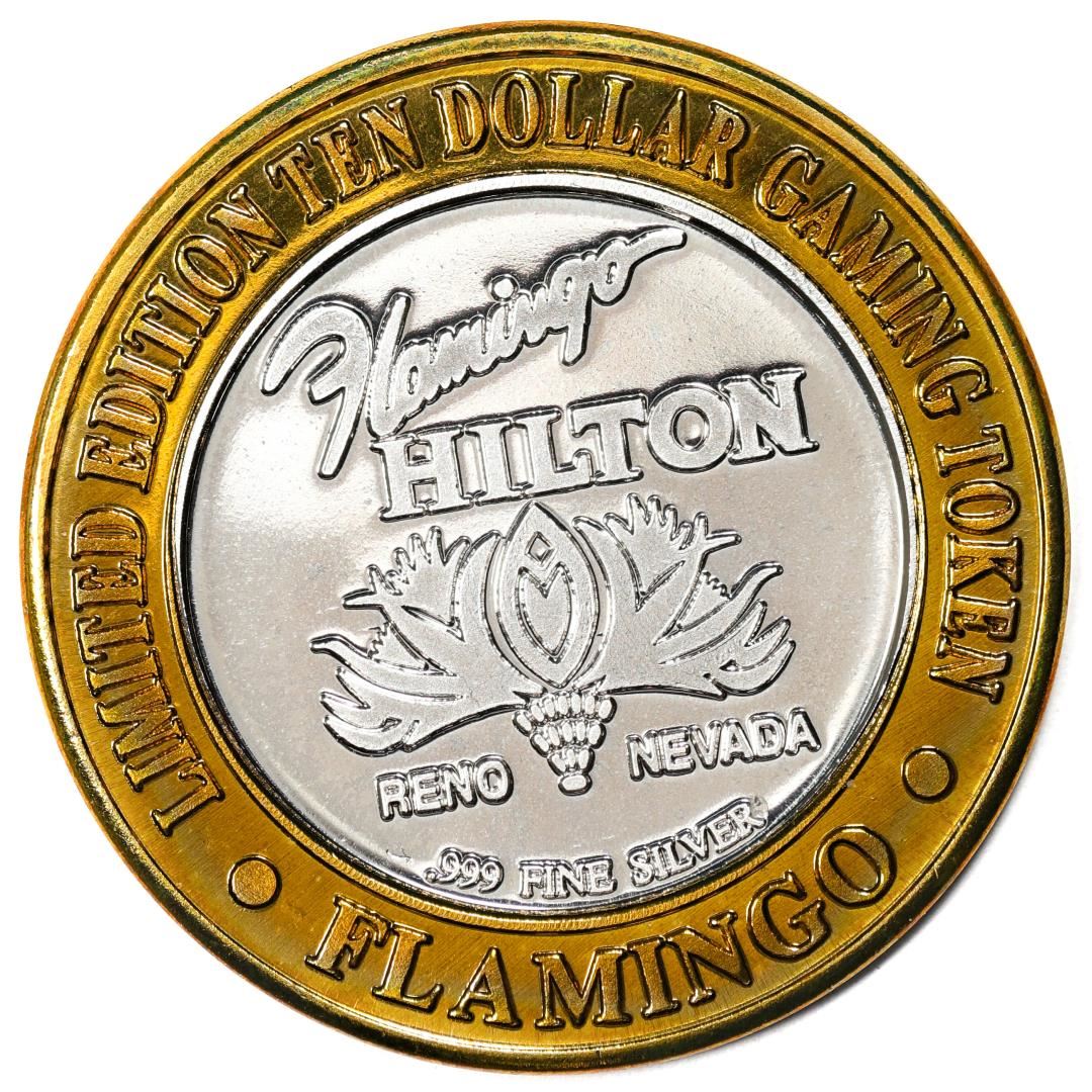 One .999 Silver Flamingo Hilton Reno, Nevada $10 Casino Limited Edition Gaming Token.