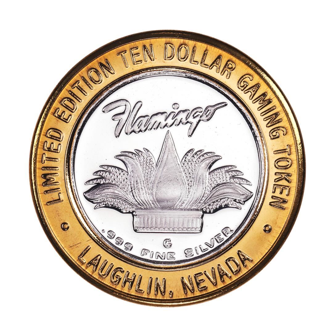 One .999 Silver Flamingo Laughlin Nevada $10 Casino Limited Edition Gaming Token.