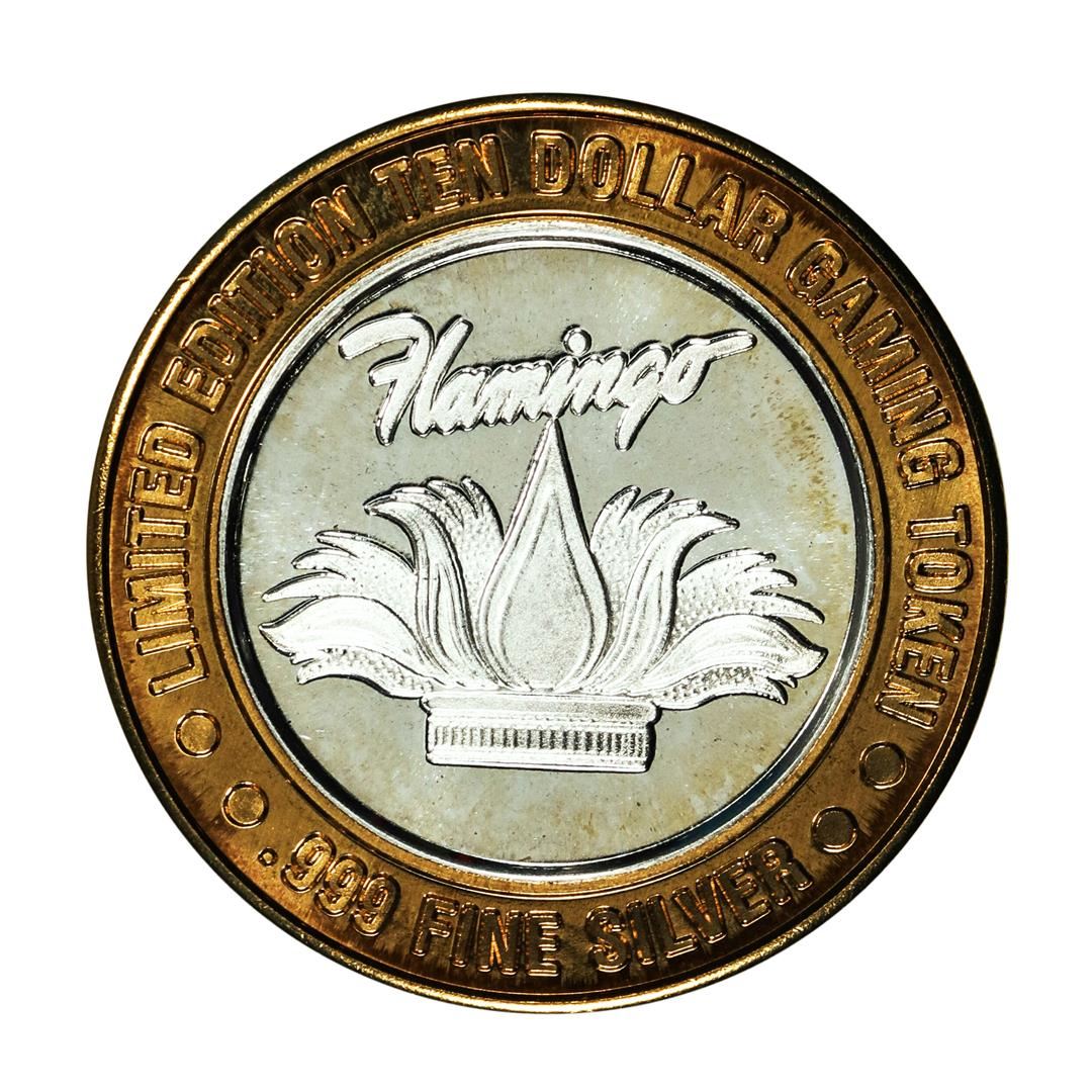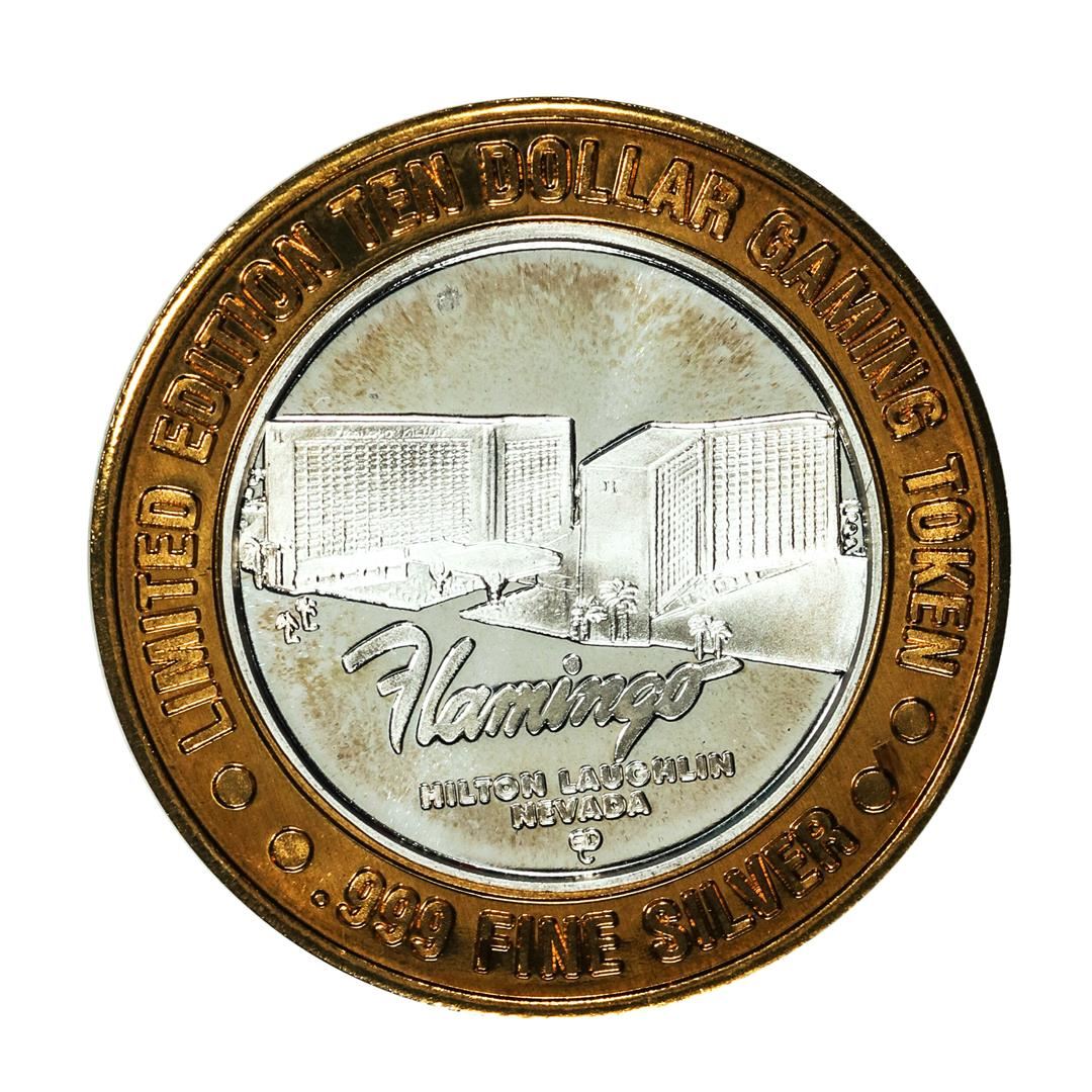One .999 Silver Flamingo Laughlin Nevada $10 Casino Limited Edition Gaming Token.