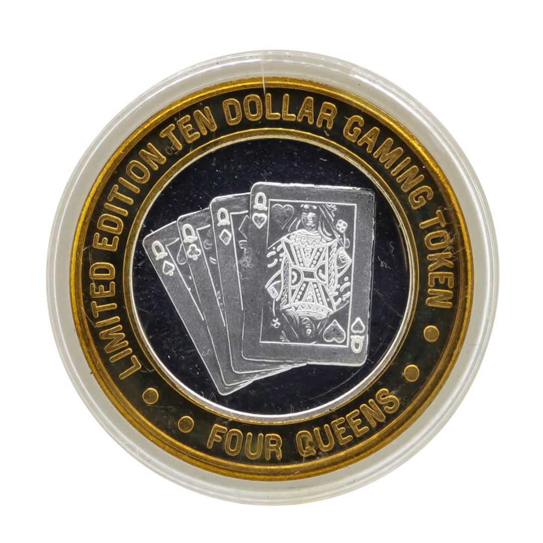 One .999 Silver Four Queens Casino Hotel Las Vegas $10 Limited Edition Gaming Token.