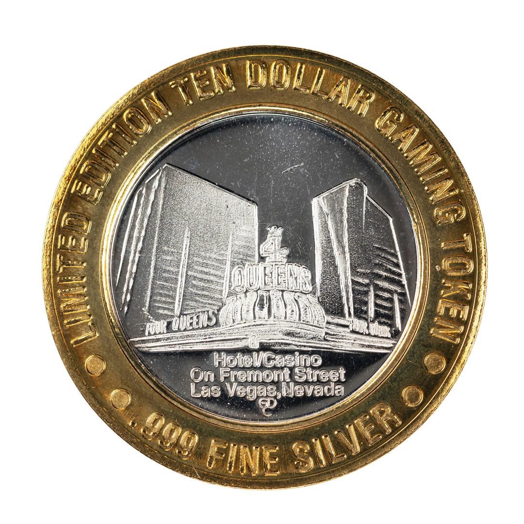 One .999 Silver Four Queens Casino Hotel Las Vegas $10 Limited Edition Gaming Token.