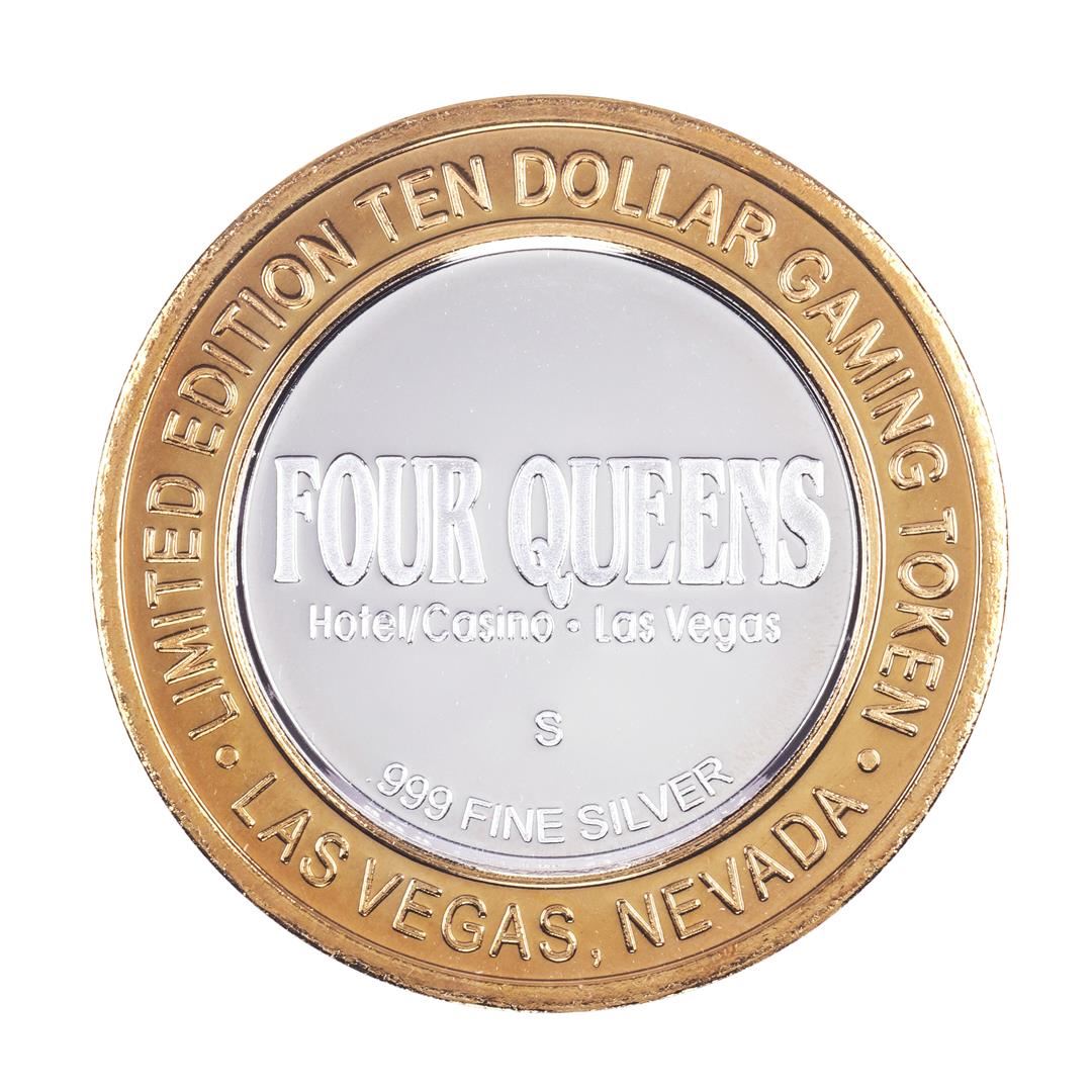 One .999 Silver Four Queens Casino Hotel Las Vegas $10 Limited Edition Gaming Token.
