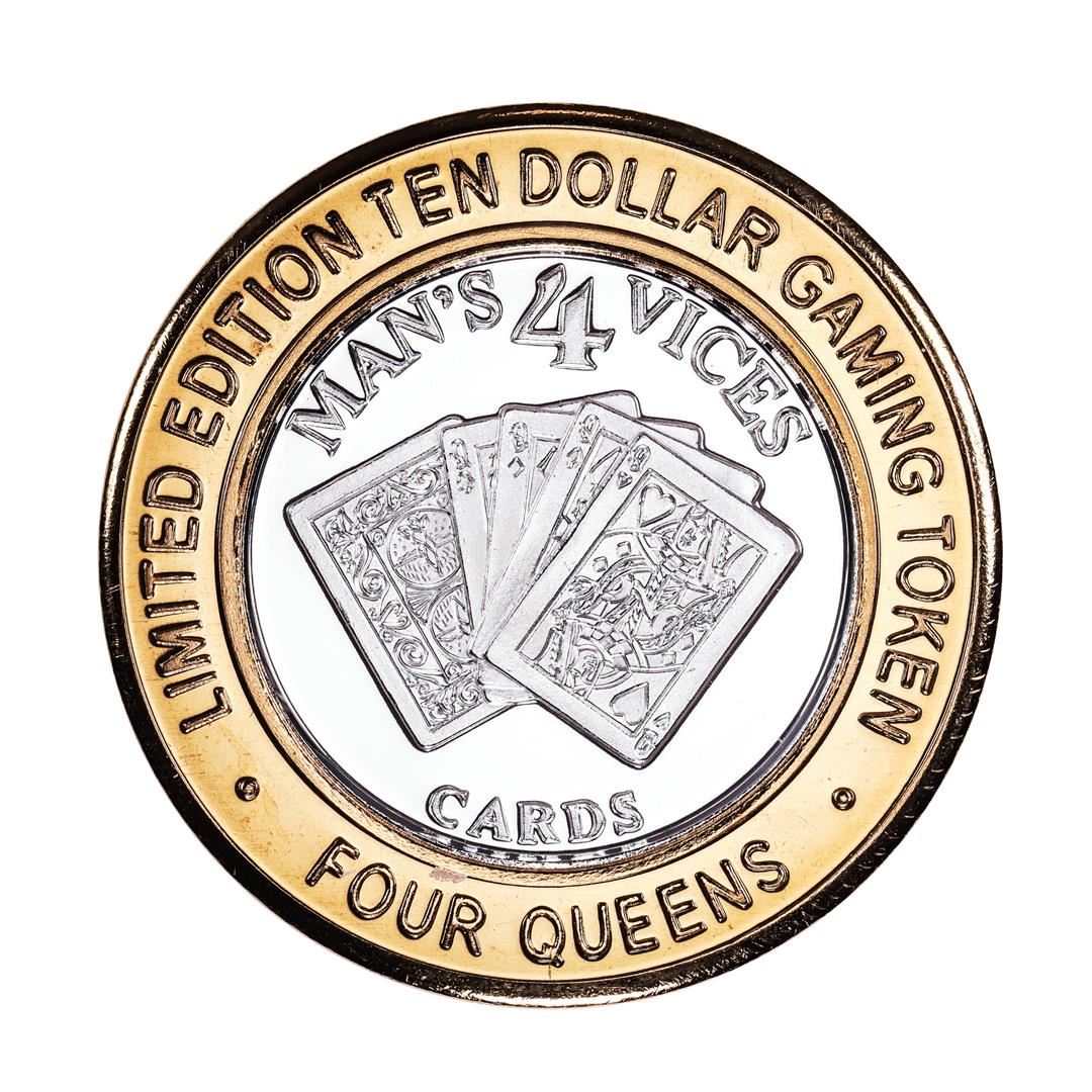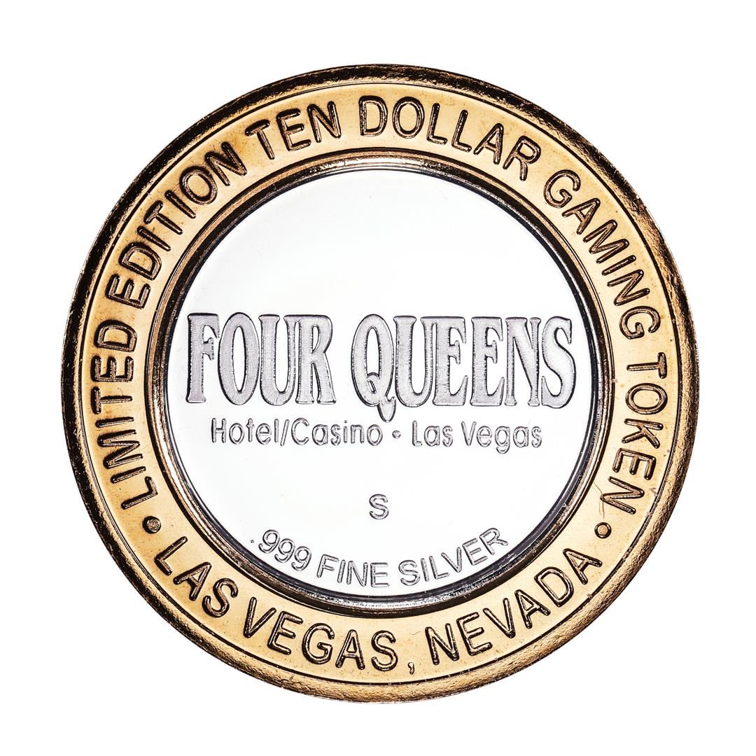 One .999 Silver Four Queens Casino Hotel Las Vegas $10 Limited Edition Gaming Token.
