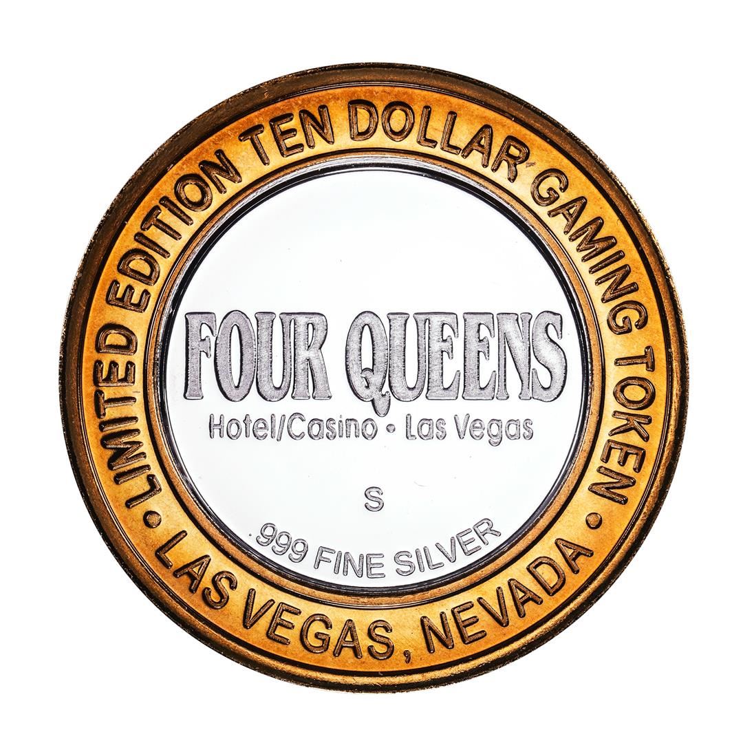 One .999 Silver Four Queens Casino Hotel Las Vegas $10 Limited Edition Gaming Token.
