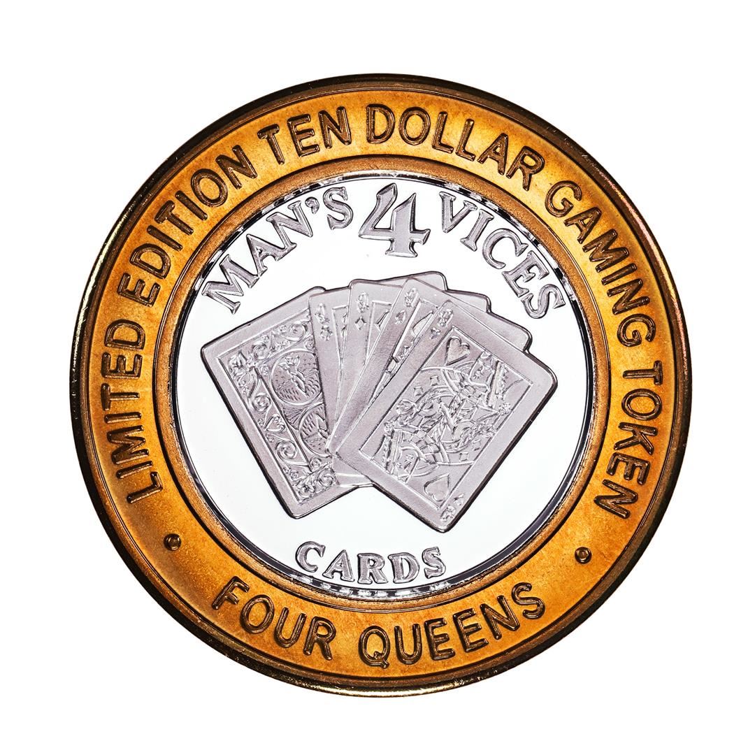One .999 Silver Four Queens Casino Hotel Las Vegas $10 Limited Edition Gaming Token.