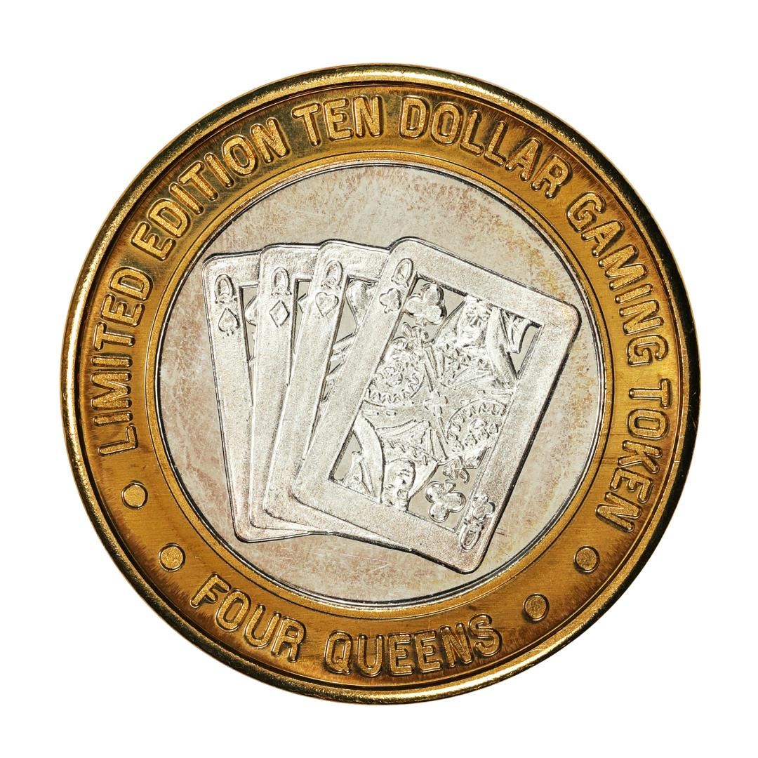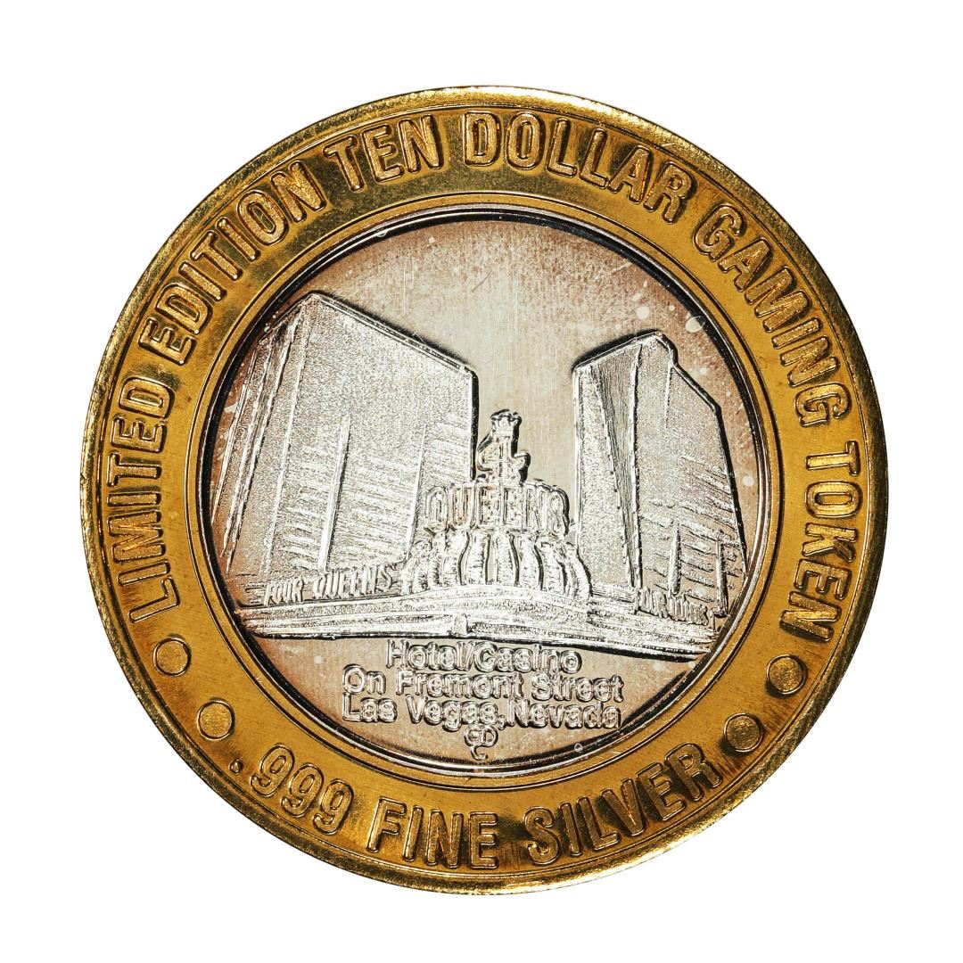 One .999 Silver Four Queens Casino Hotel Las Vegas $10 Limited Edition Gaming Token.