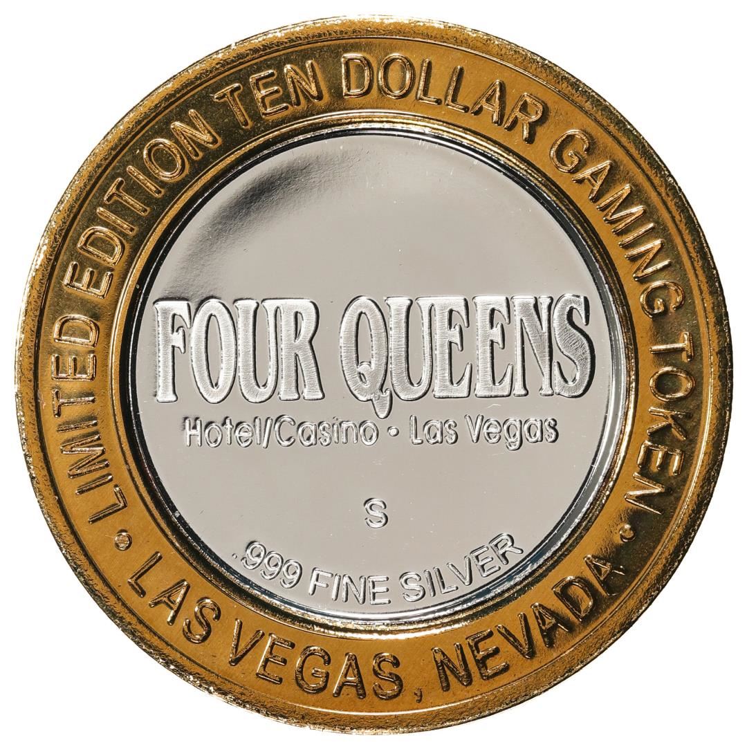 One .999 Silver Four Queens Casino Hotel Las Vegas $10 Limited Edition Gaming Token.