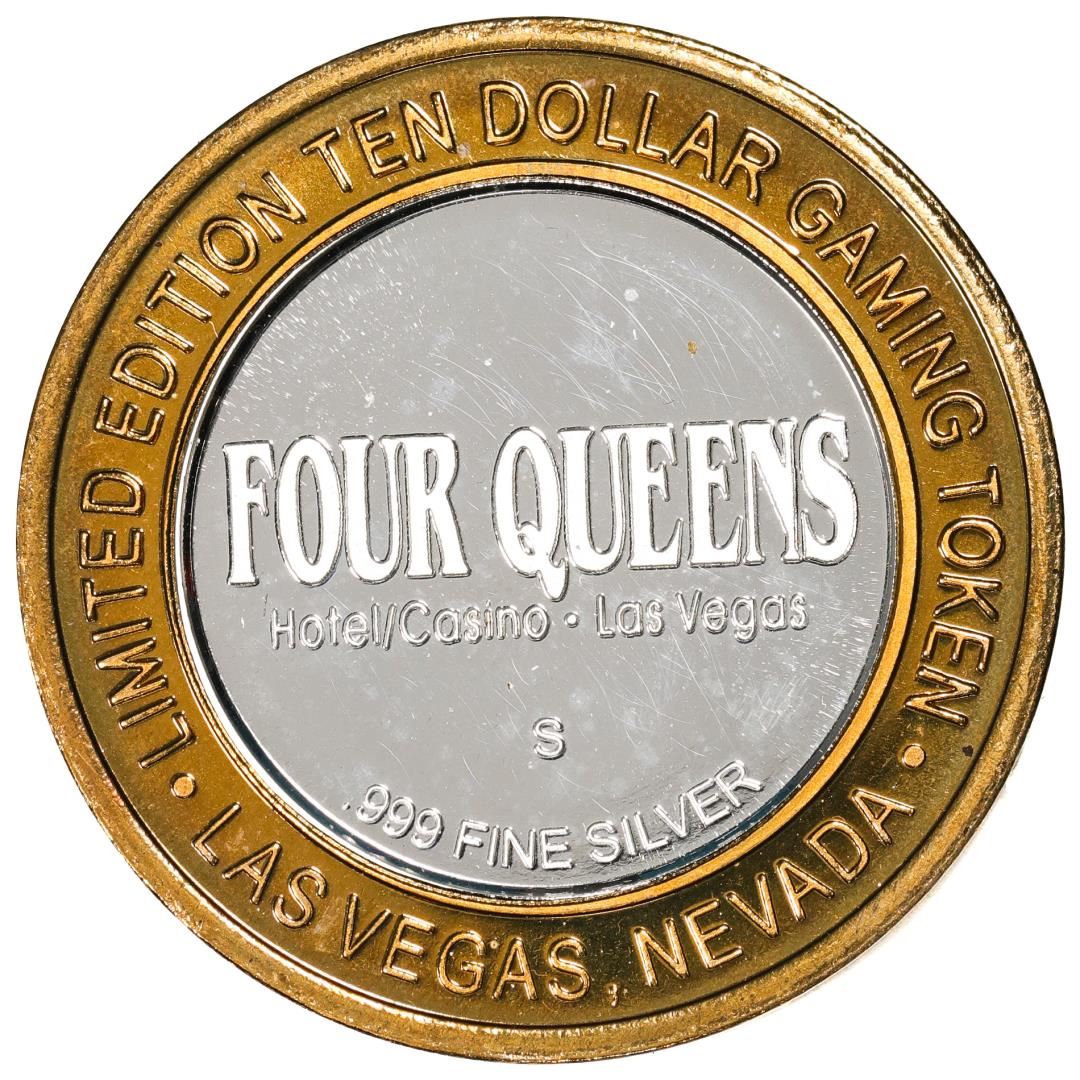 One .999 Silver Four Queens Casino Hotel Las Vegas $10 Limited Edition Gaming Token.