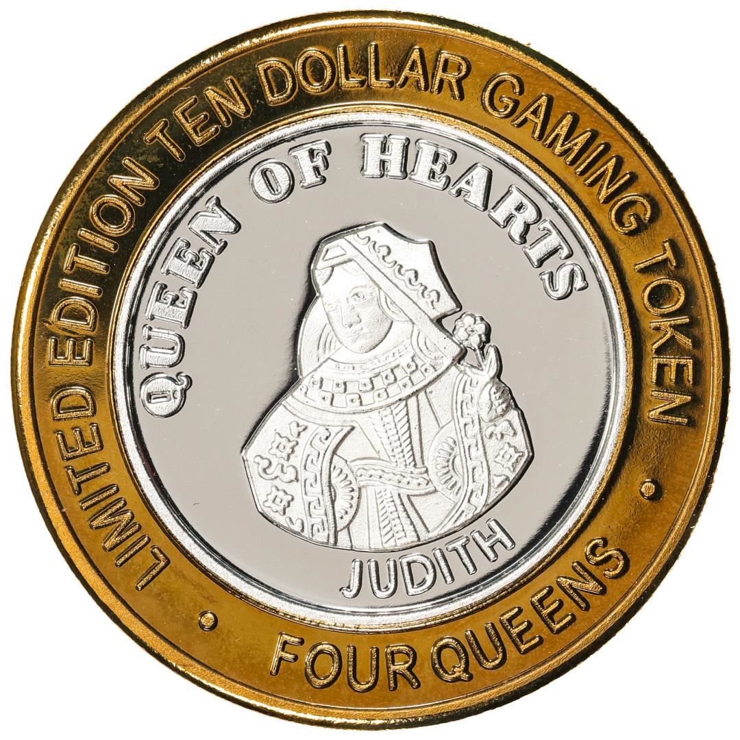 One .999 Silver Four Queens Casino Hotel Las Vegas $10 Limited Edition Gaming Token.