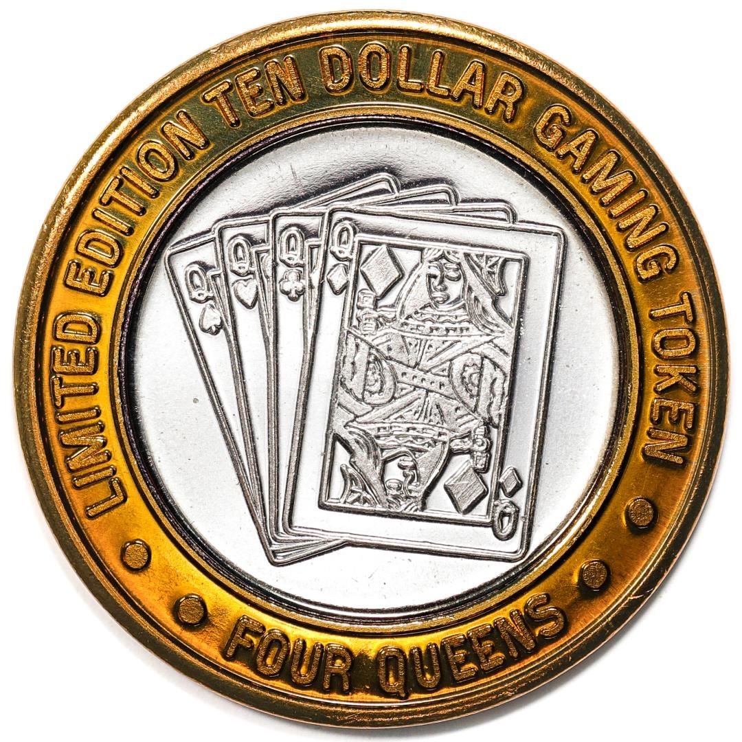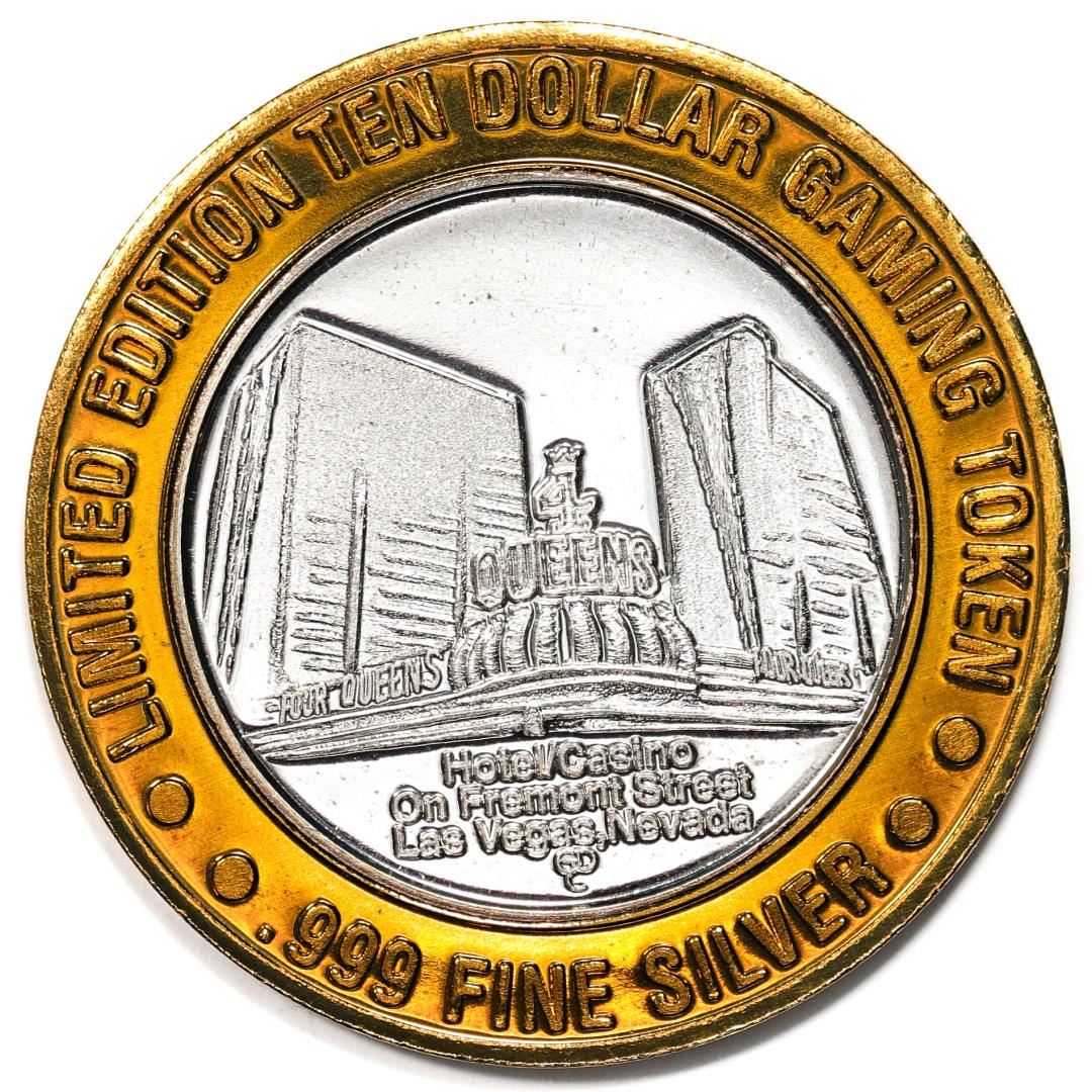 One .999 Silver Four Queens Casino Hotel Las Vegas $10 Limited Edition Gaming Token.