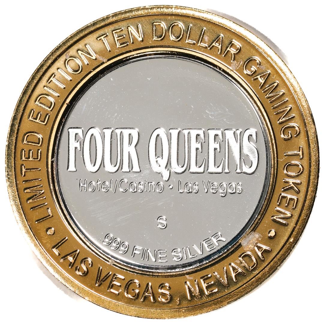 One .999 Silver Four Queens Casino Hotel Las Vegas $10 Limited Edition Gaming Token.
