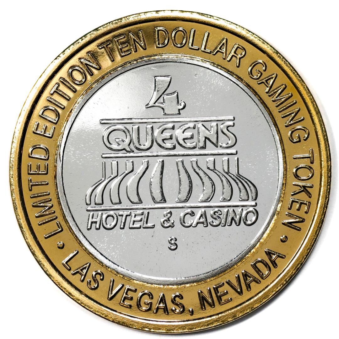 One .999 Silver Four Queens Casino Hotel Las Vegas $10 Limited Edition Gaming Token.
