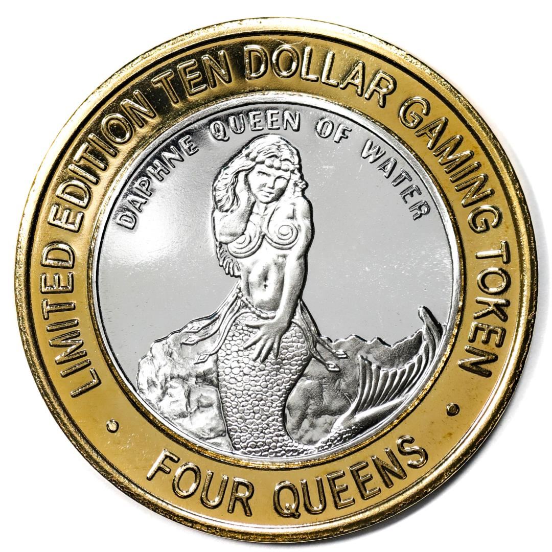One .999 Silver Four Queens Casino Hotel Las Vegas $10 Limited Edition Gaming Token.