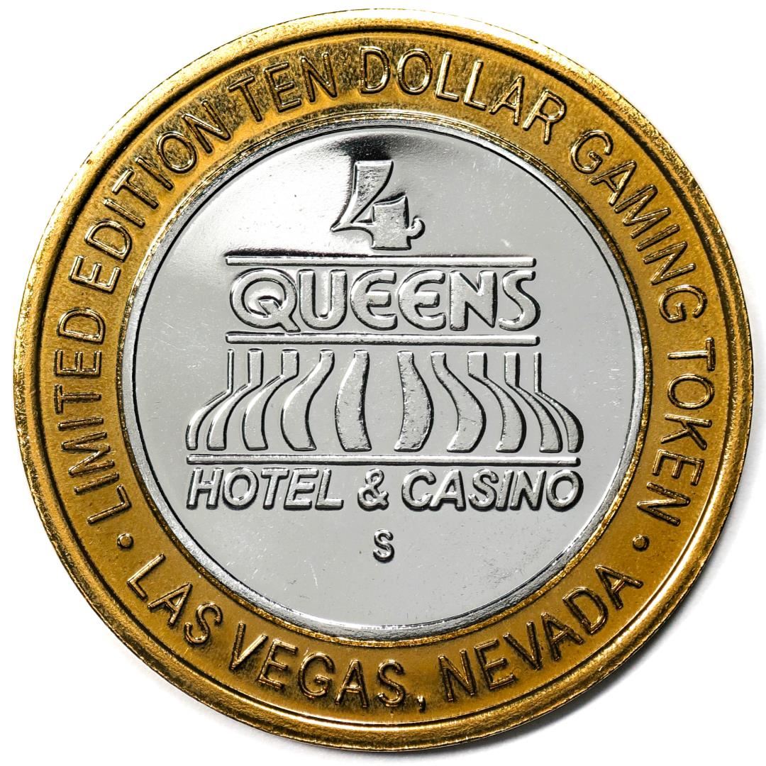 One .999 Silver Four Queens Casino Hotel Las Vegas $10 Limited Edition Gaming Token.