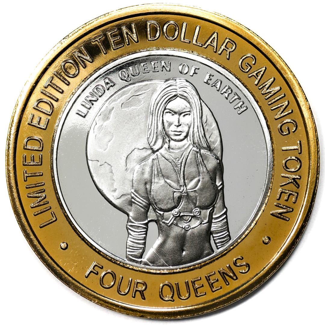 One .999 Silver Four Queens Casino Hotel Las Vegas $10 Limited Edition Gaming Token.