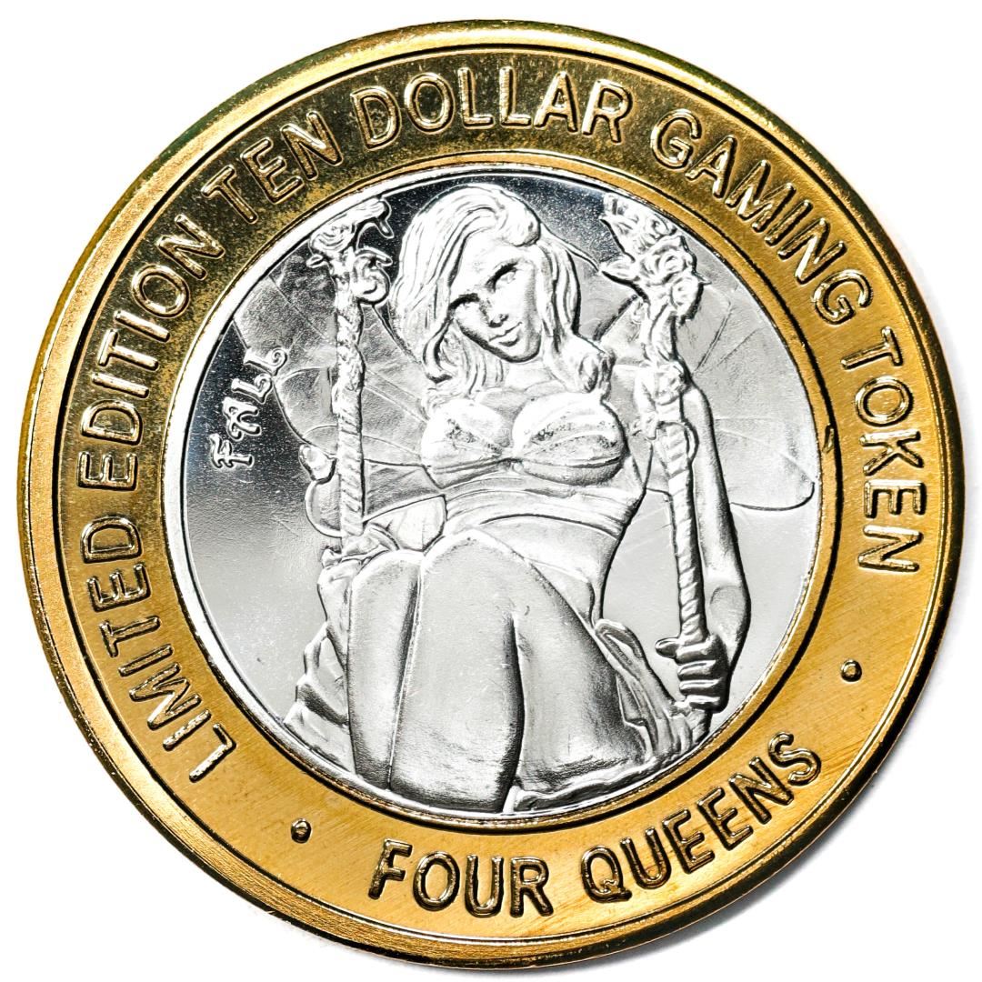 One .999 Silver Four Queens Casino Hotel Las Vegas $10 Limited Edition Gaming Token.
