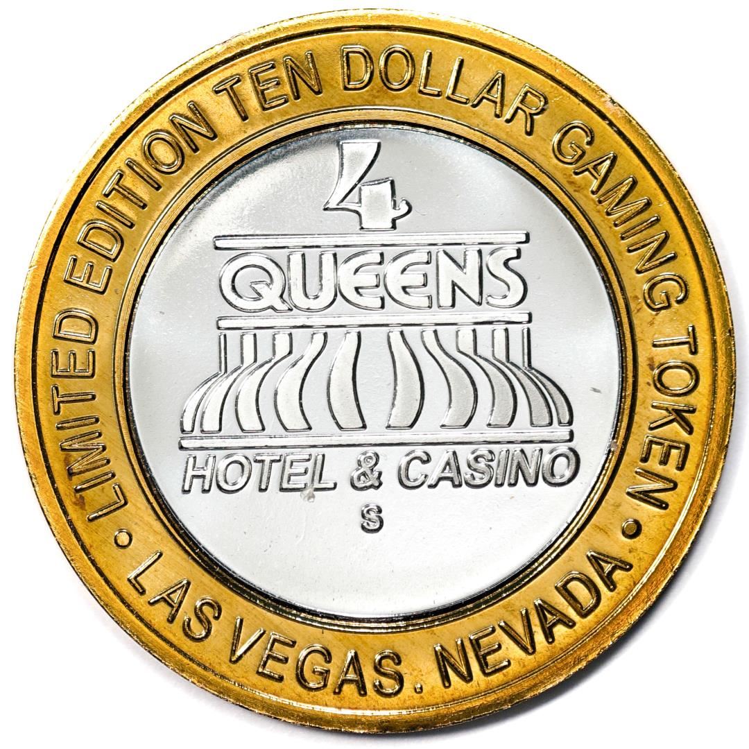 One .999 Silver Four Queens Casino Hotel Las Vegas $10 Limited Edition Gaming Token.