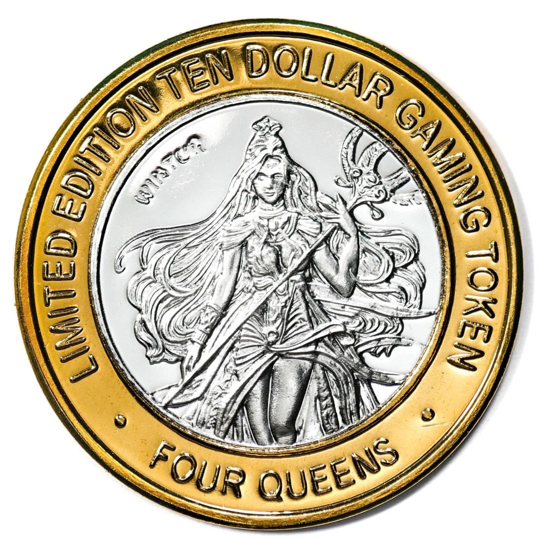 One .999 Silver Four Queens Casino Hotel Las Vegas $10 Limited Edition Gaming Token.