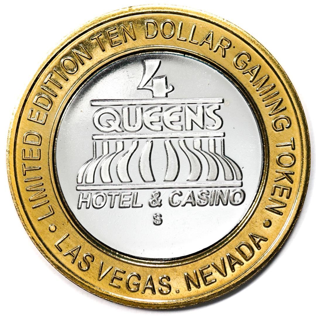 One .999 Silver Four Queens Casino Hotel Las Vegas $10 Limited Edition Gaming Token.