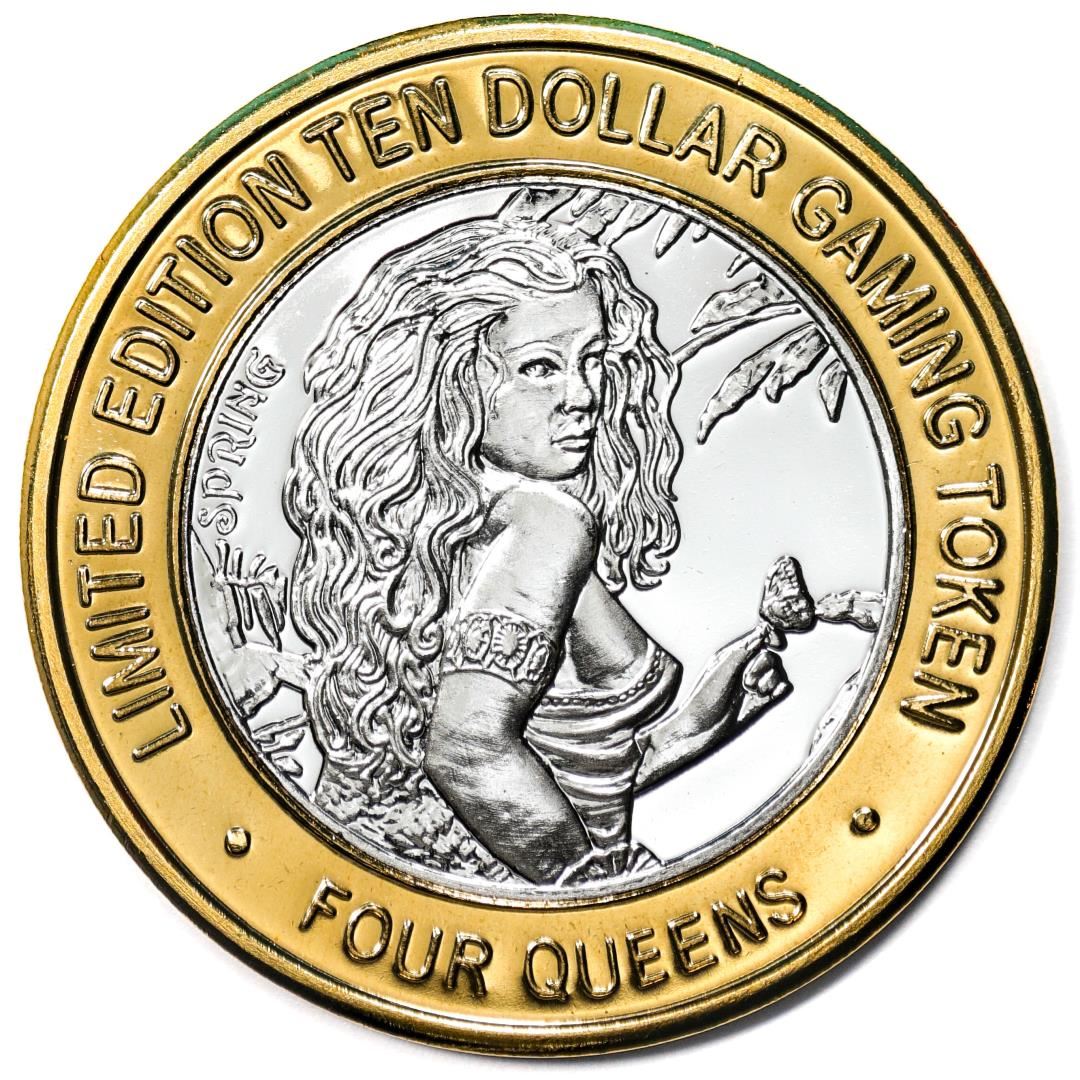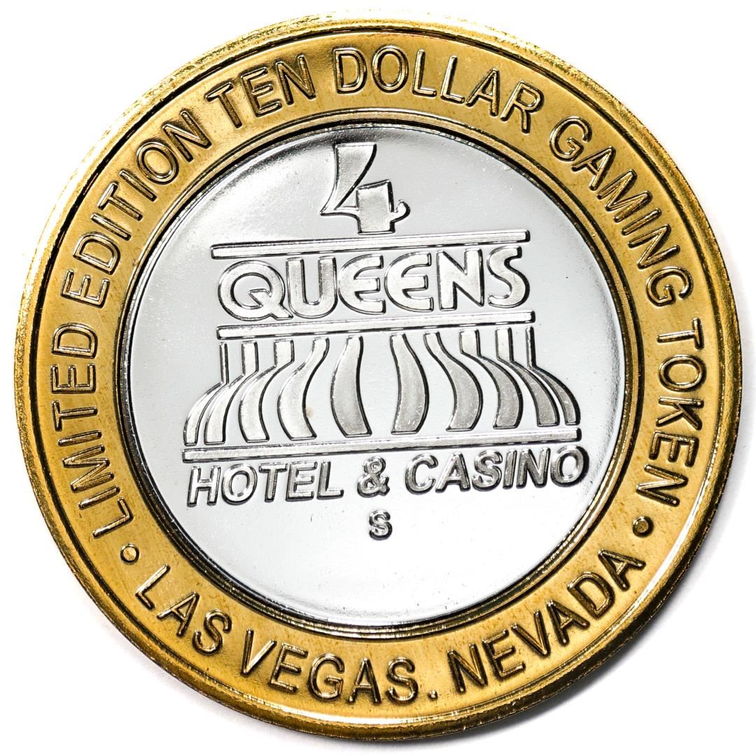 One .999 Silver Four Queens Casino Hotel Las Vegas $10 Limited Edition Gaming Token.