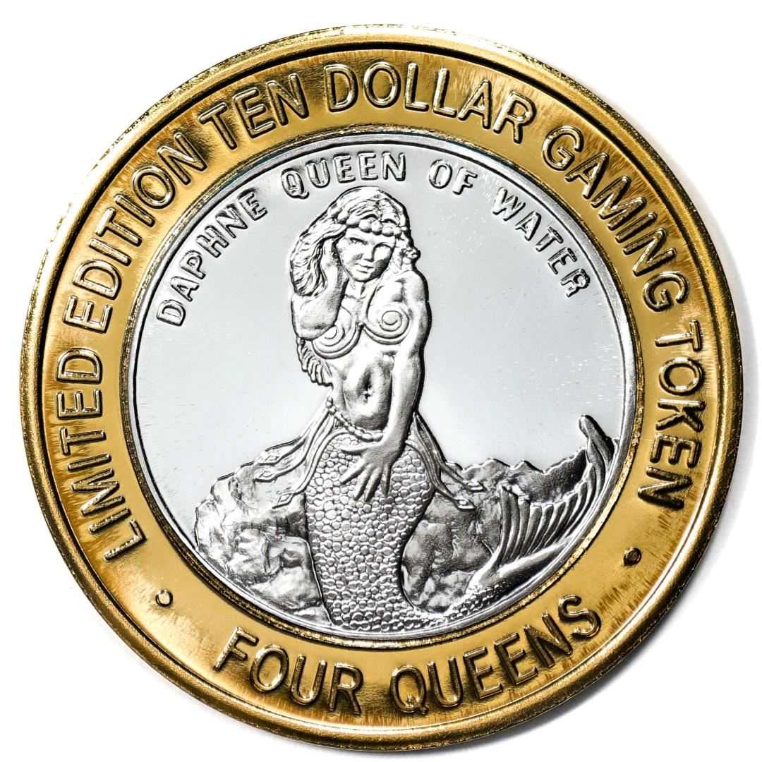 One .999 Silver Four Queens Casino Hotel Las Vegas $10 Limited Edition Gaming Token.