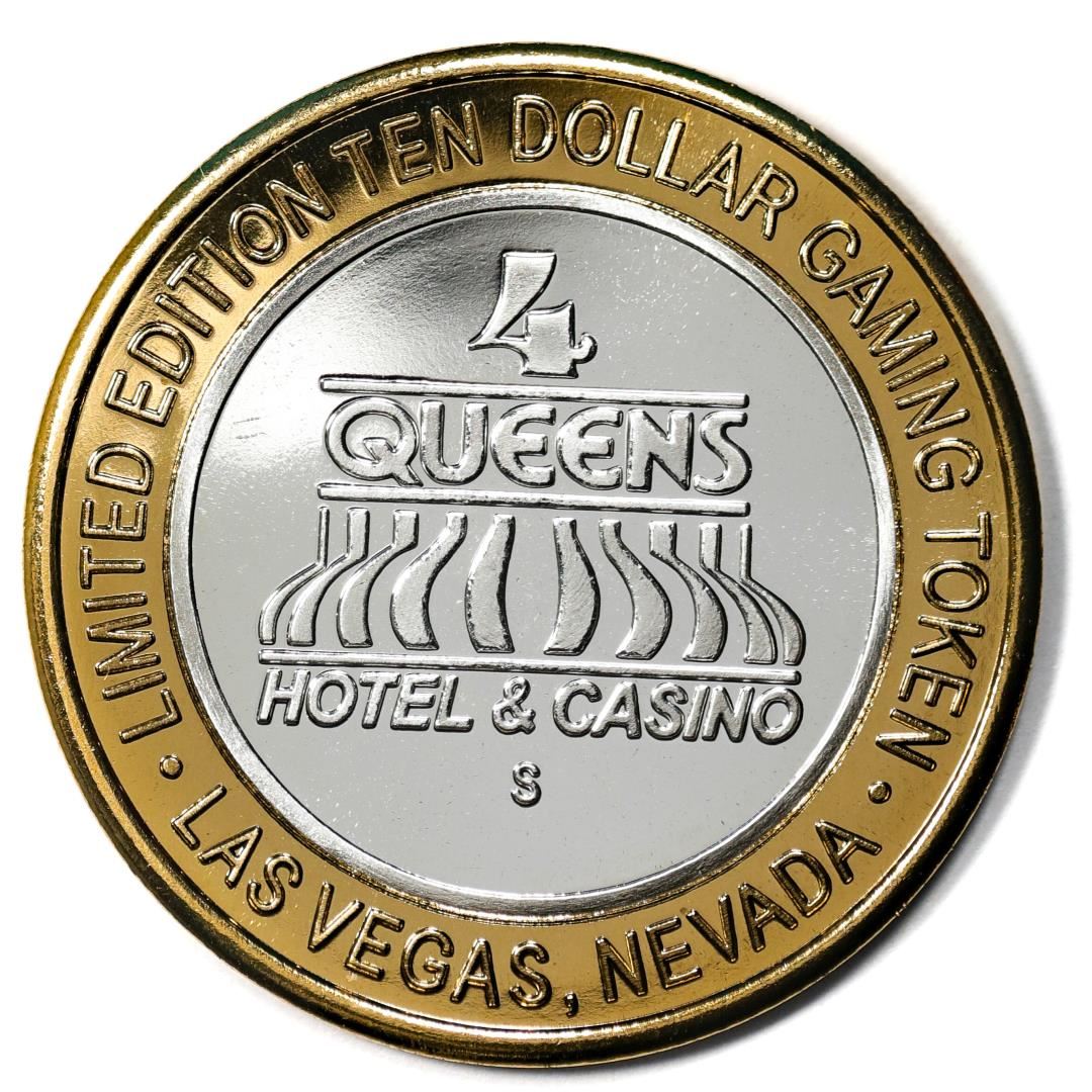 One .999 Silver Four Queens Casino Hotel Las Vegas $10 Limited Edition Gaming Token.