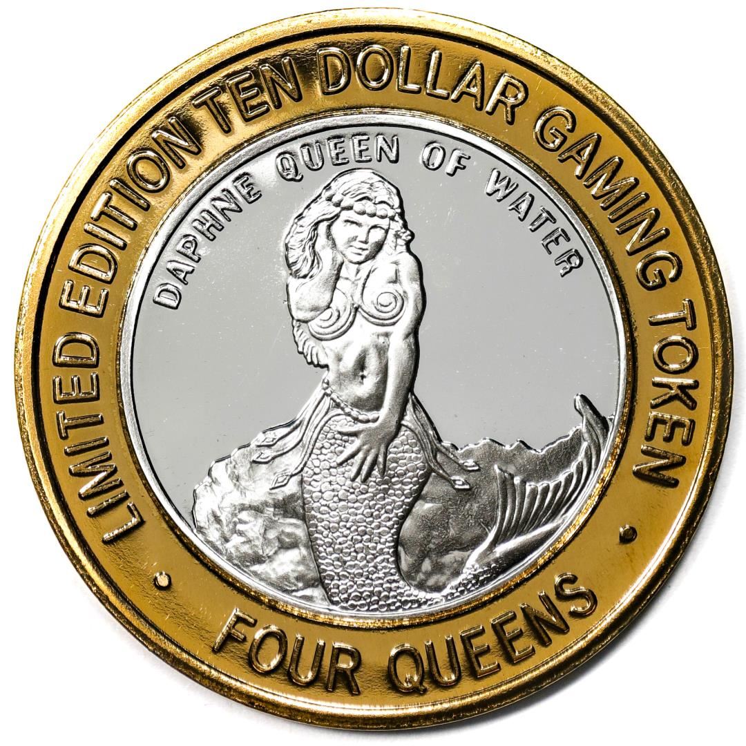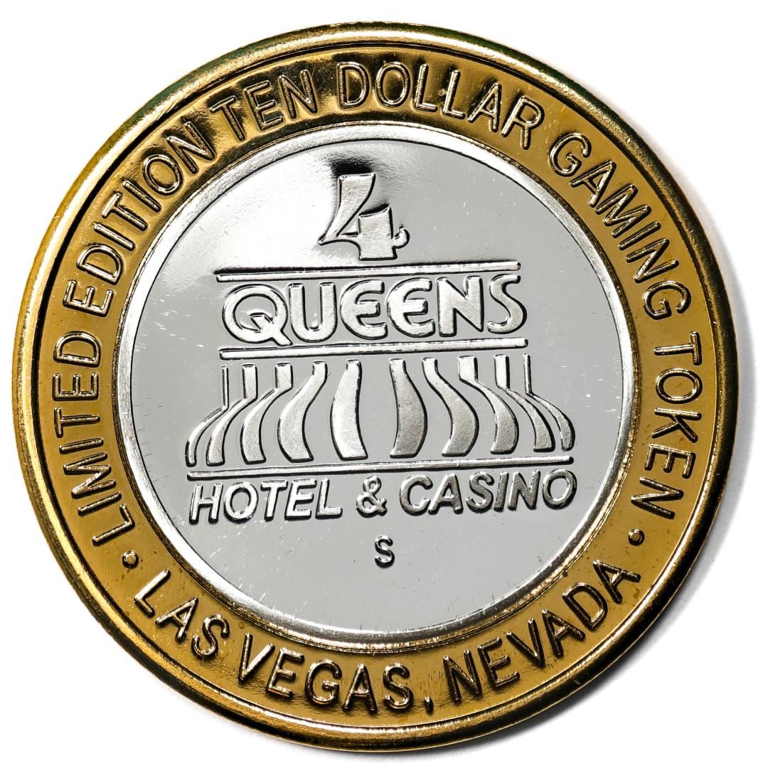 One .999 Silver Four Queens Casino Hotel Las Vegas $10 Limited Edition Gaming Token.