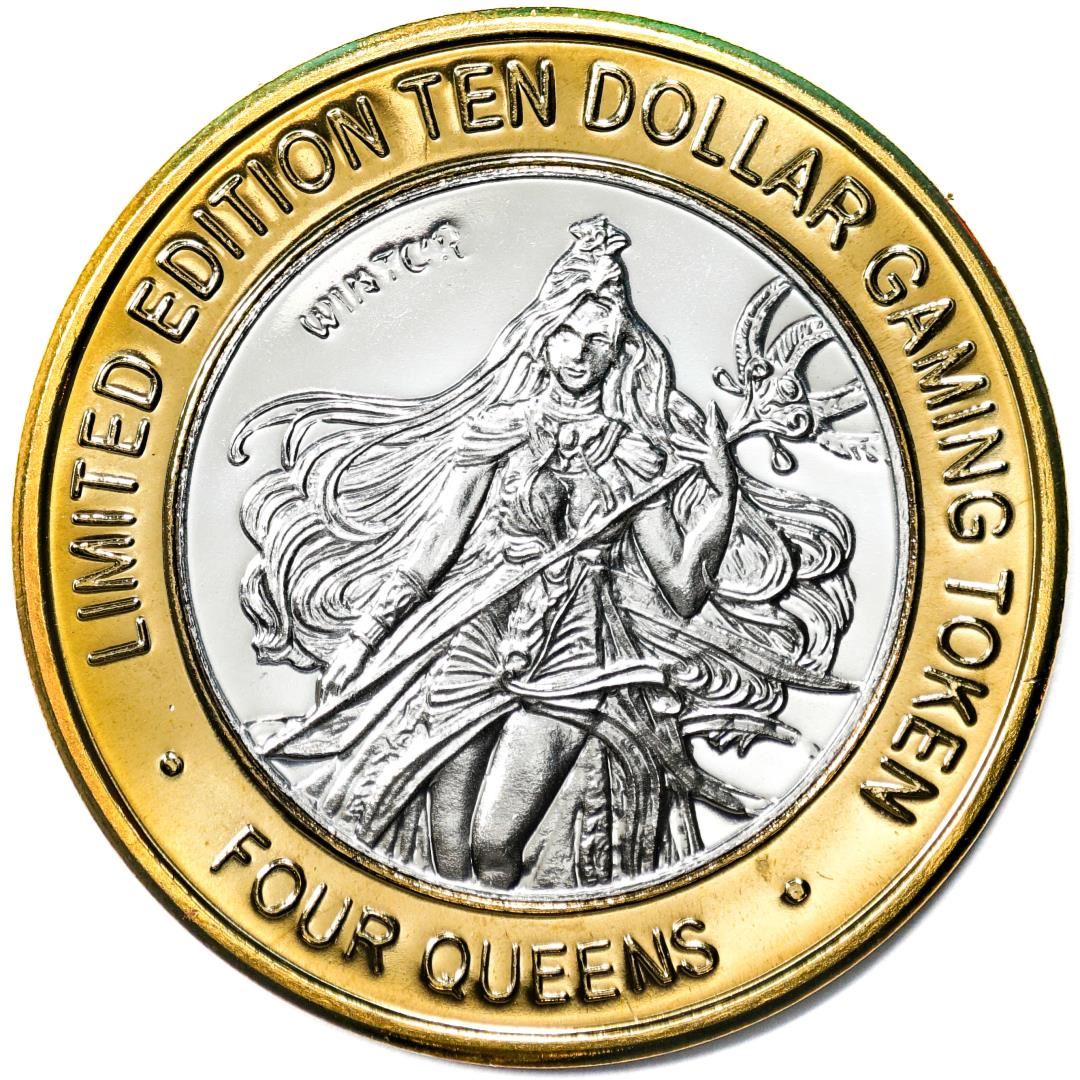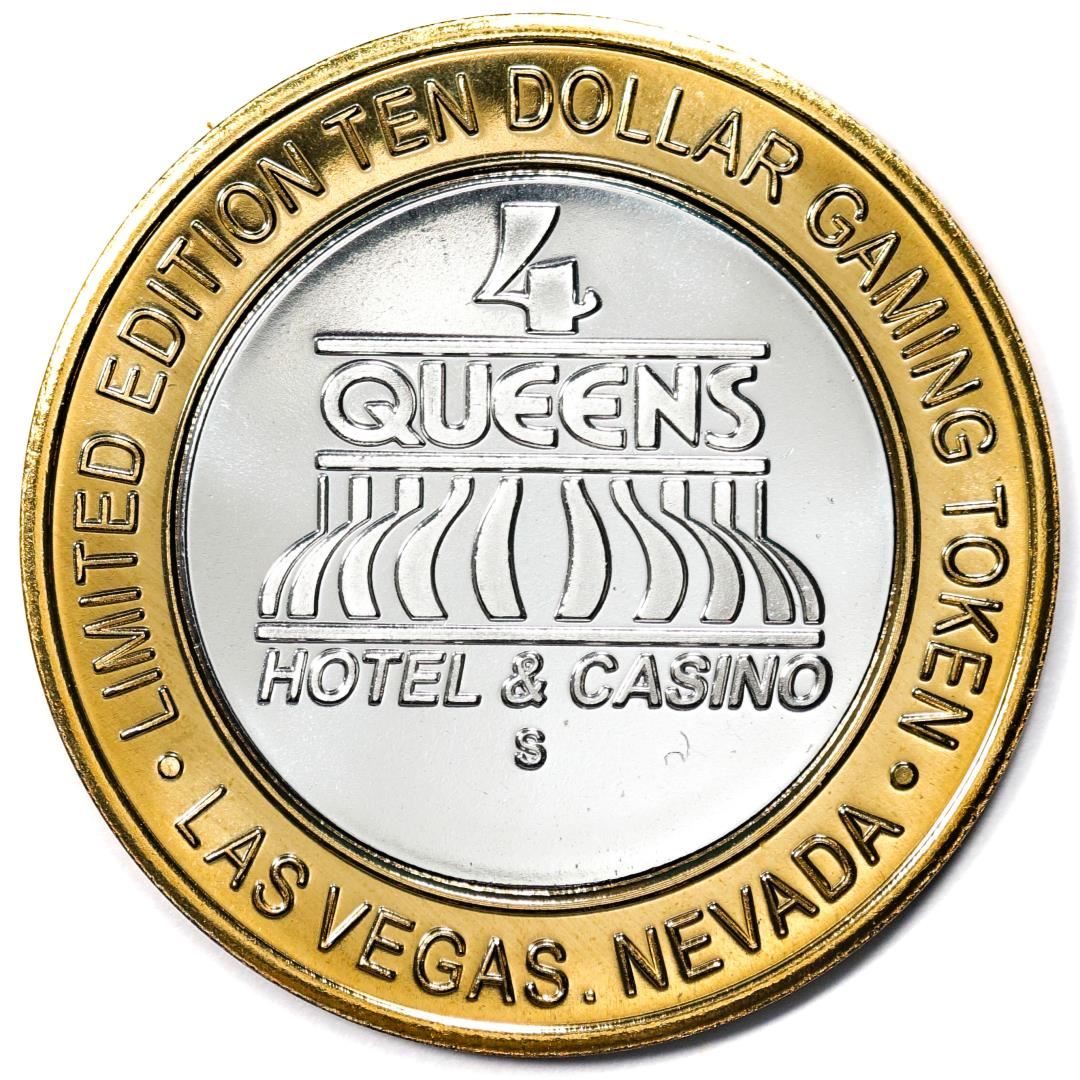 One .999 Silver Four Queens Casino Hotel Las Vegas $10 Limited Edition Gaming Token.