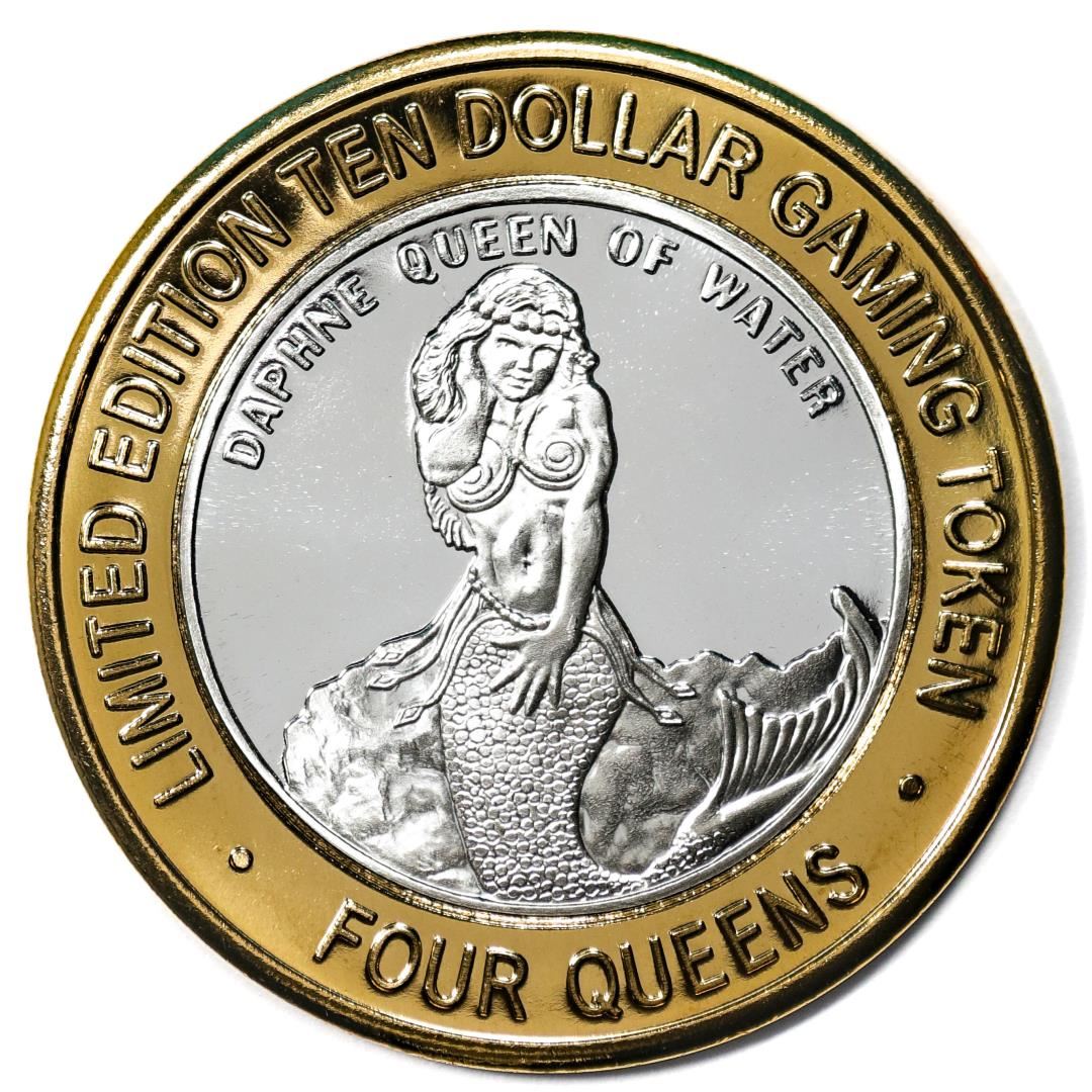 One .999 Silver Four Queens Casino Hotel Las Vegas $10 Limited Edition Gaming Token.