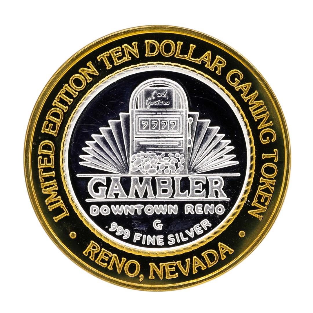 .999 Silver Gambler Reno, Nevada $10 Casino Limited Edition Gaming Token