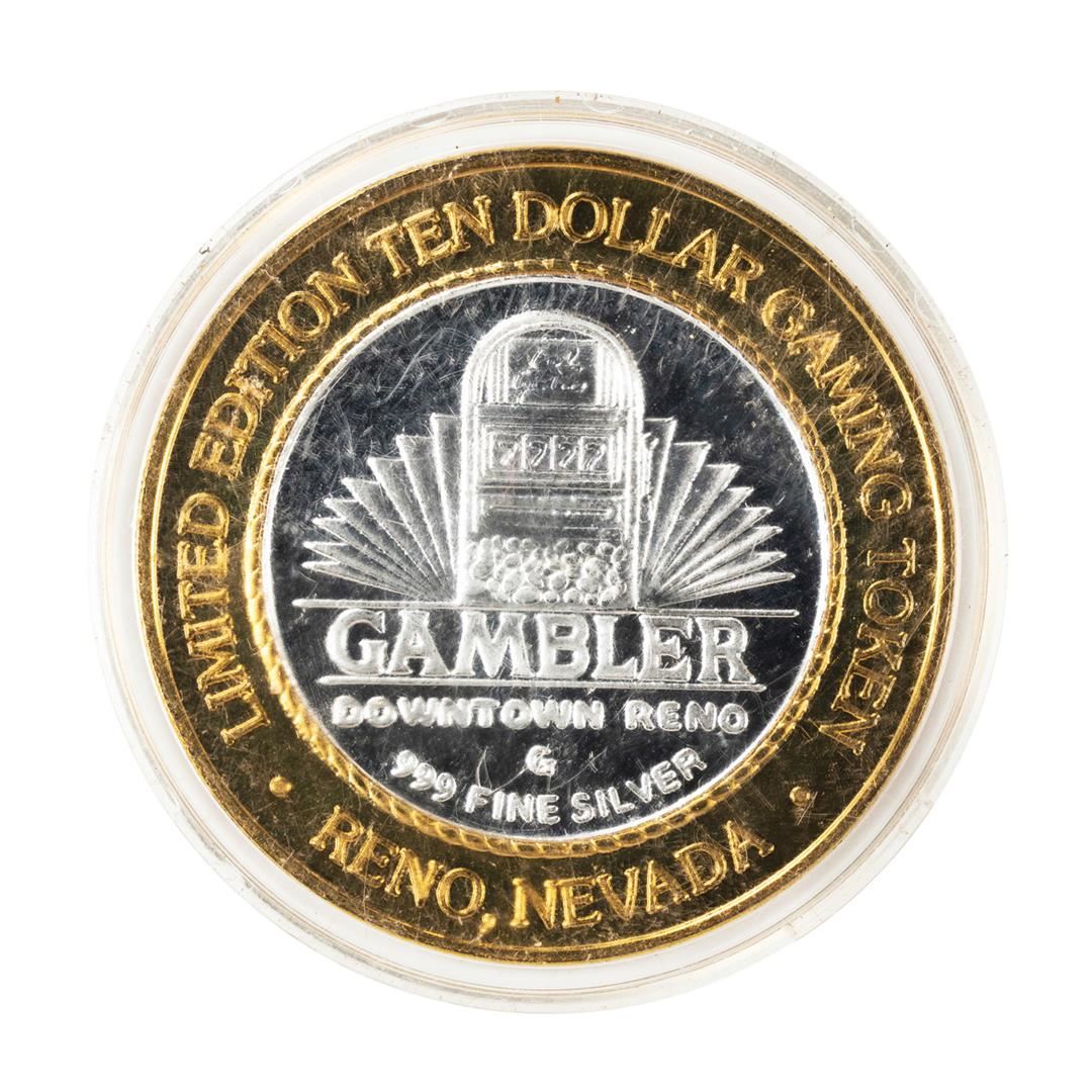 .999 Silver Gambler Reno, Nevada $10 Casino Limited Edition Gaming Token