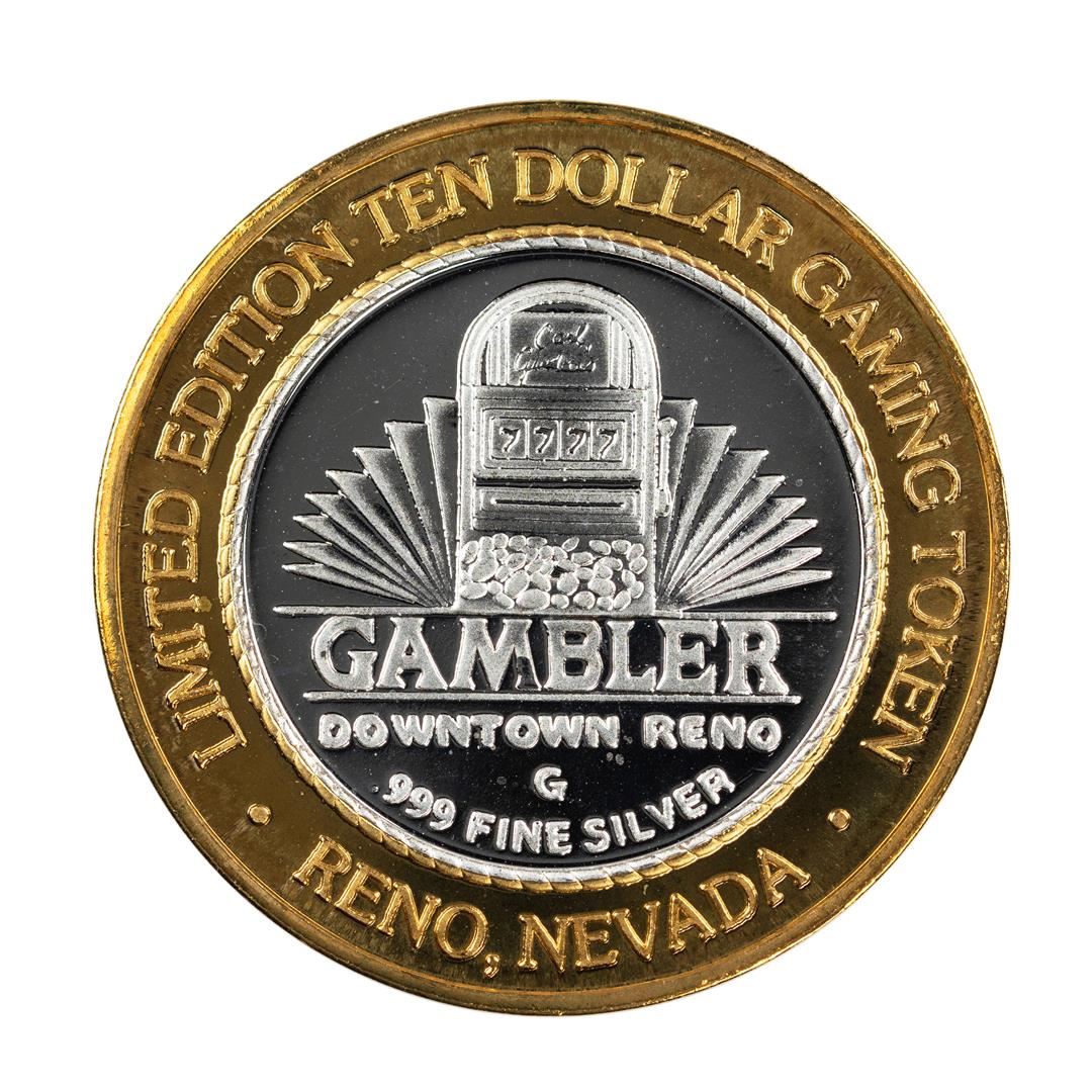 .999 Silver Gambler Reno, Nevada $10 Casino Limited Edition Gaming Token