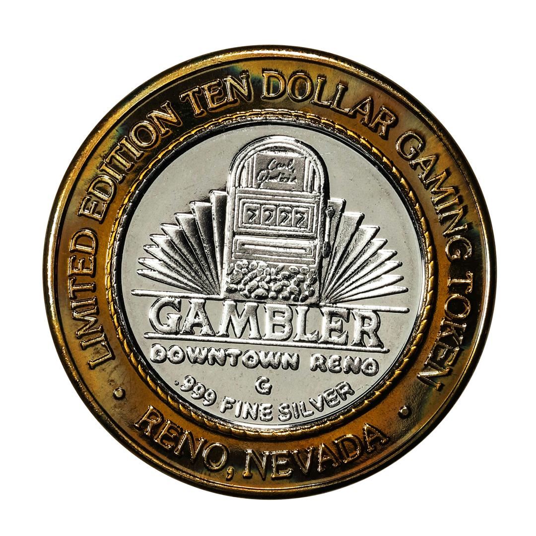 .999 Silver Gambler Reno, Nevada $10 Casino Limited Edition Gaming Token